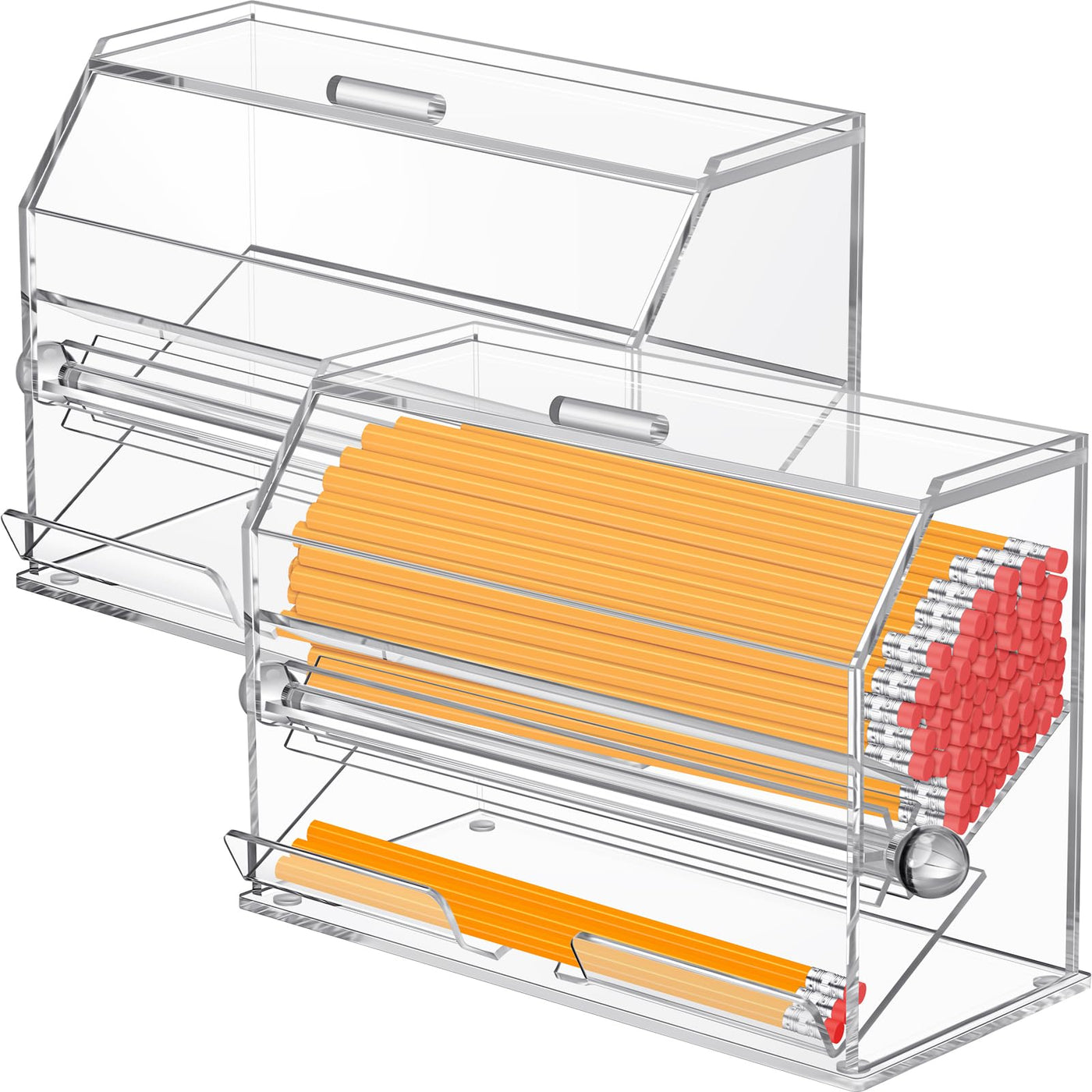 Pinkunn Acrylic Pencil Dispenser Holder Clear Plastic Pencil Holder With Lid Rolling Knob Pencil Storage Box For Classroom Offic