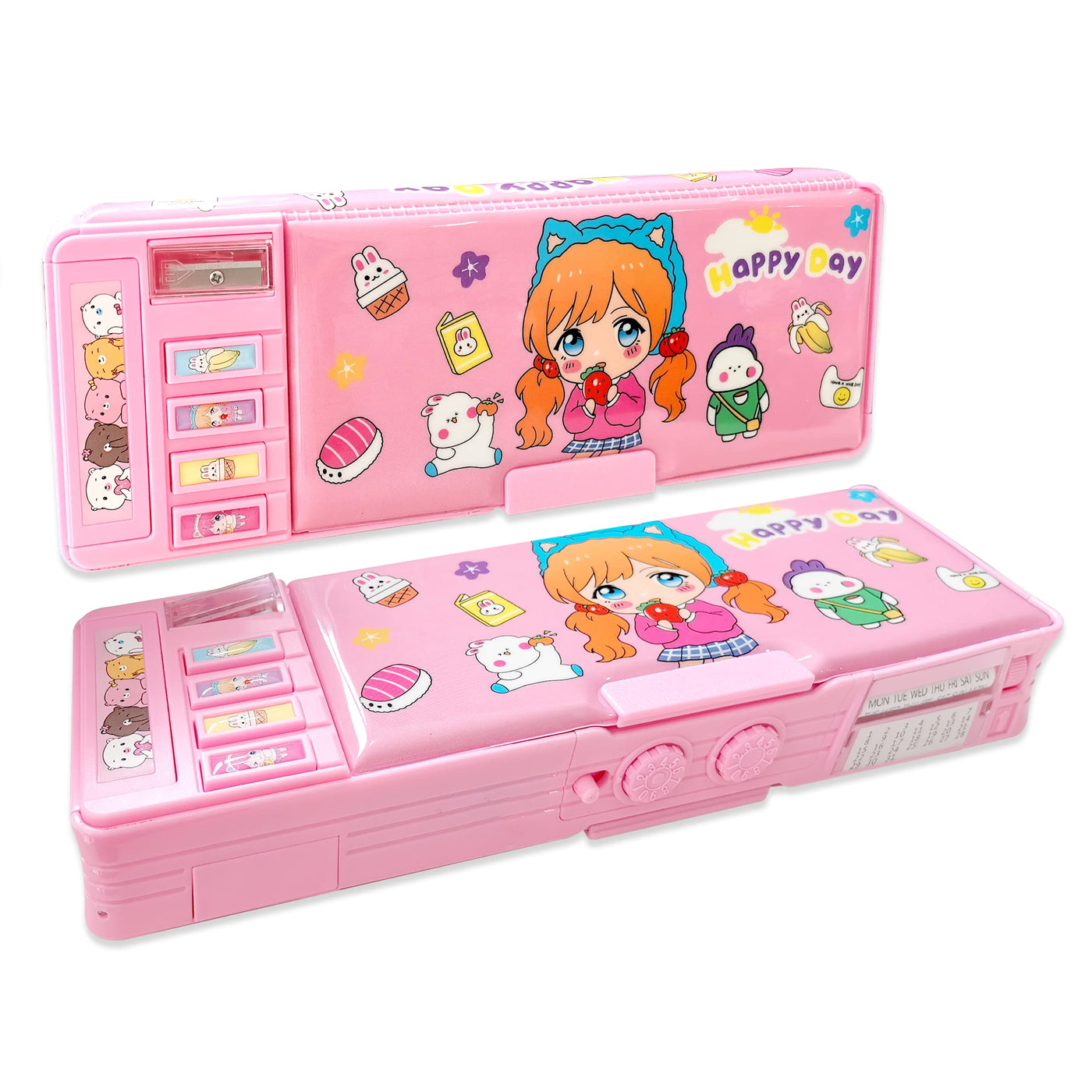 Pop Up Multifunction Pencil Case For Girls, Cute Cartoon Pen Box With Password Lock, Sharpener, Whiteboard, Best Birthday Gifts