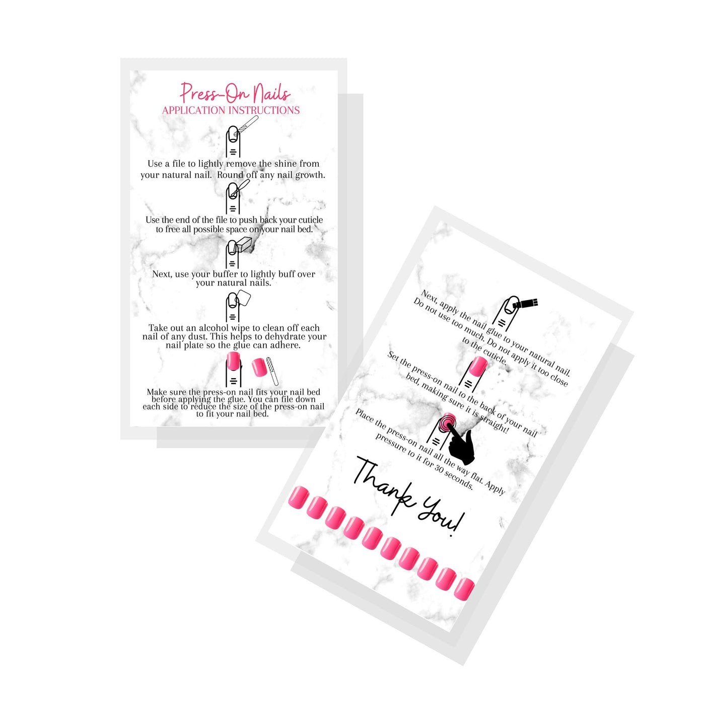 Press-On Nail Application Instructions Cards | 50 Pack | 2X3.5' Inch Business Card Size | Diy Press-On Nail Kit | Marble With P