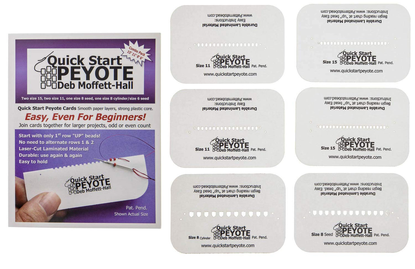 Used In This Video Tutorial:. How To Use The Quick Start Peyote Cards. . Never Struggle To Start A Peyote Project Again! New From Deb Moffett-Hall, Quick Start Peyote Is A Fast & Easy Way To Start Flat Even-Count Or Odd-Count Peyote Projects. These Starter Cards Are Precision Laser Cut From Durable 3-Layer Laminate. They Look Like Paper But Work Like Plastic - They'Re Sturdy Enough To Reuse Again And Again! Includes Step-By-Step Instructions With Color Diagrams. Start With Only 1St Row 'Up' Beads! No Need To Alternate Rows 1 & 2. Join Cards Together For Larger Projects, Odd Or Even Count. Can Also Be Used To Start Right Angle Weave Projects. This Combo Pack Incudes: Two 15/0 Seed Bead Cards, Two 11/0 Seed Bead Cards, One 8/0 Seed Bead Card And One 8/0 Cylinder Bead Card. Quantity: 6 Cards Per Pack