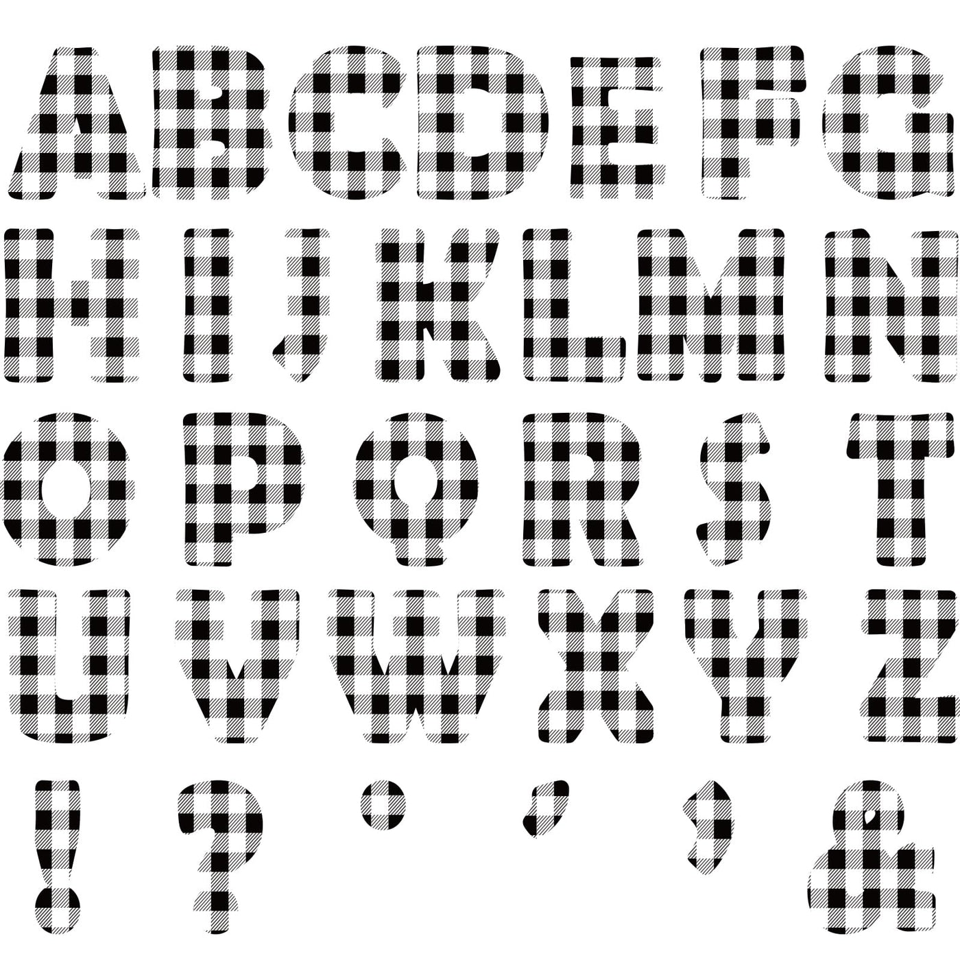 Qyeahkj 150 Pcs Large 7' Font Bulletin Board Letters Punctuation Cutout Combo Black White Checkered Border Letter Decoration For Classroom Alphabet Poster Wall Bulletin Board Display Home School Decor Letters For Poster Board Are Great For Decorating Your Home, Office, School, Classroom And So On, To Add Eye Catching Atmosphere, And You Can Play With Preschoolers, Spelling Words And Phrases, And Let Them Learn More About Letters And Punctuation. Specifications: Material: Copperplate Paper Size: 7' Color: Black, White Package Includes: 118 X Capital Letters 32 X Punctuation Marks 200 X Glue Points