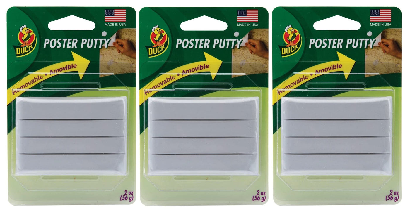 Ideal For Temporary Mounting Of Paper Items Such As Posters, Graphics And Decorations, Duck Brand Poster Putty Is Removable And Reusable. It Is A Safe And Clean Alternative To Tape, Nails, Glues, Tacks And Staples That Will Not Damage The Mounting Surface And Will Not Dry Out. It Is Non-Toxic And Does Not Stain On Most Non-Porous Surfaces. This White Putty Holds Up To 1 Pound. And Works With A Variety Of Surfaces. Poster Putty Is Ideal For Use At Home Or Apartment, Dorms, Classrooms And Even The Office, Where You Don'T Want To Leave A Mark While Showing Off Your Style And Personality.