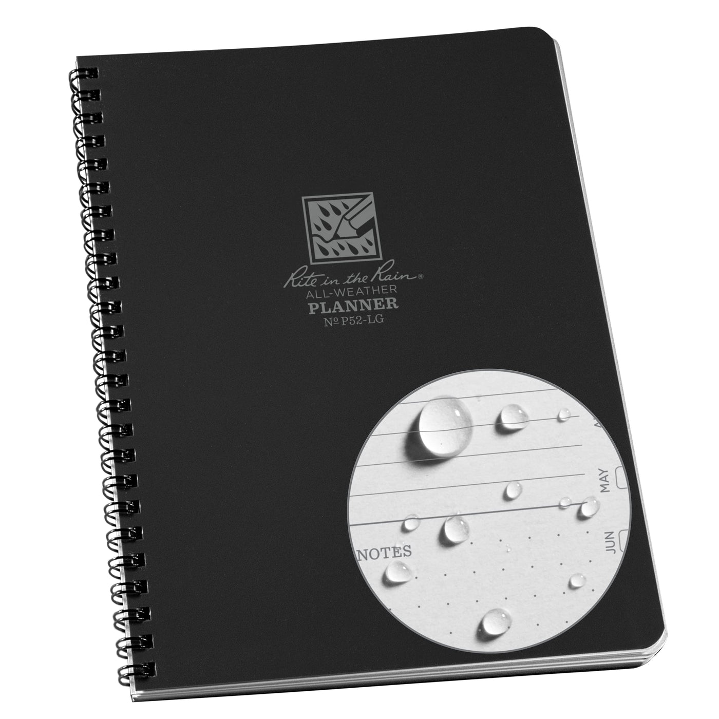 Rite In The Rain Weatherproof Side Spiral Weekly Planner, 6.625' X 8.5', Black Cover, Undated Calendar (No. P52-Lg)