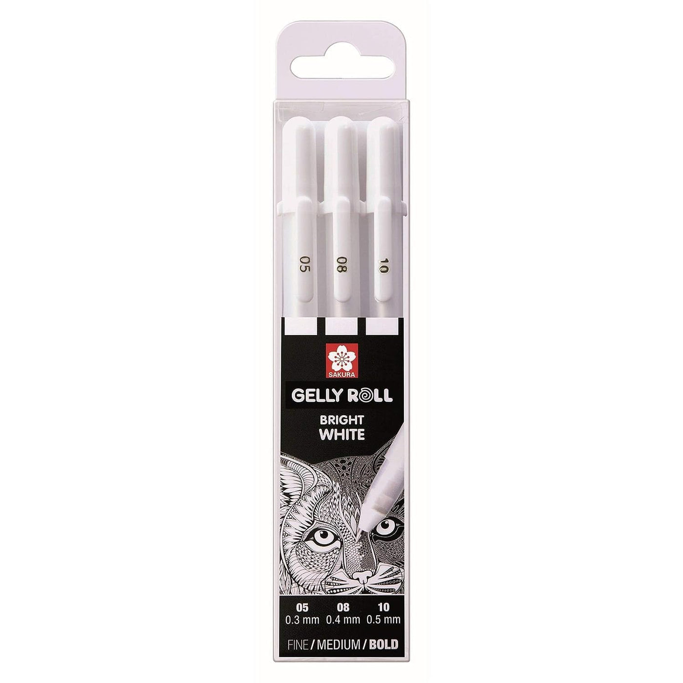 Sakura - Gelly Basic White - 05 - 08 - 10 - Set Of 3 In The 1980S, Sakura Surprised The Pen Industry With Its Invention Of The First Gel-Based Ink. Since Then The Creamy, Colourful Gelly Roll Has Remained A Favourite Of People Of All Ages, Occupations, And Interests For Its Bright Colour Selection And The Unique Properties Of The Gel Ink. The Ink In Gelly Roll Classic Pens Is Archival, Waterproof, Fade Resistant, And Chemical Proof, Making It Ideal For Legal Documents, Scrapbooks, And Any Written Document Where Permanence Is Important. Black, Blue, Royal Blue, Purple, And Burgundy Gelly Roll Colours Are Particularly Excellent For Writing Checks Because The Pigmented Gel Ink Is Resistant To Fraudulent Washings. Archival Quality Ink - Chemically Stable, Waterproof, And Fade Resistant. No Smears, Feathers, Or Bleed-Through On Most Papers.