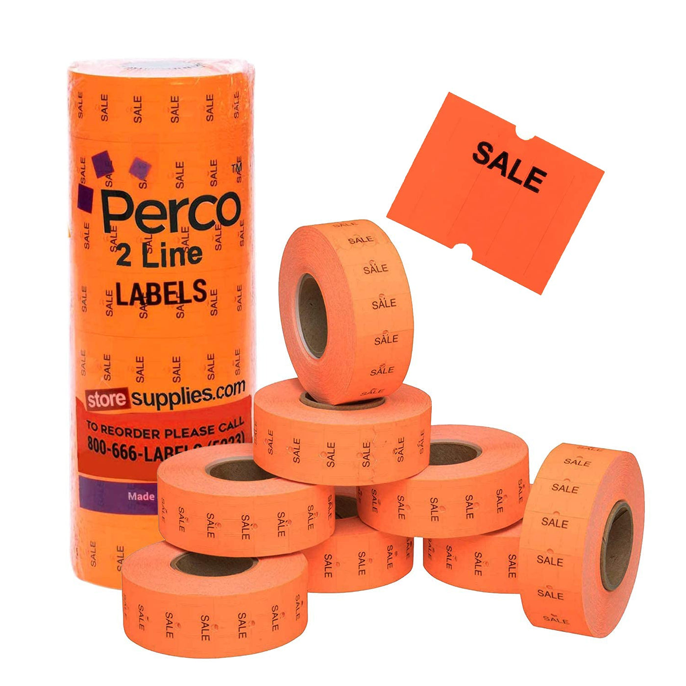 'Sale' Fluorescent Red Perco Labels For Perco 2 Line Labeler Gun - 1 Sleeve, 6,000 'Sale' Labels - For Perco 2 Line Date Gun