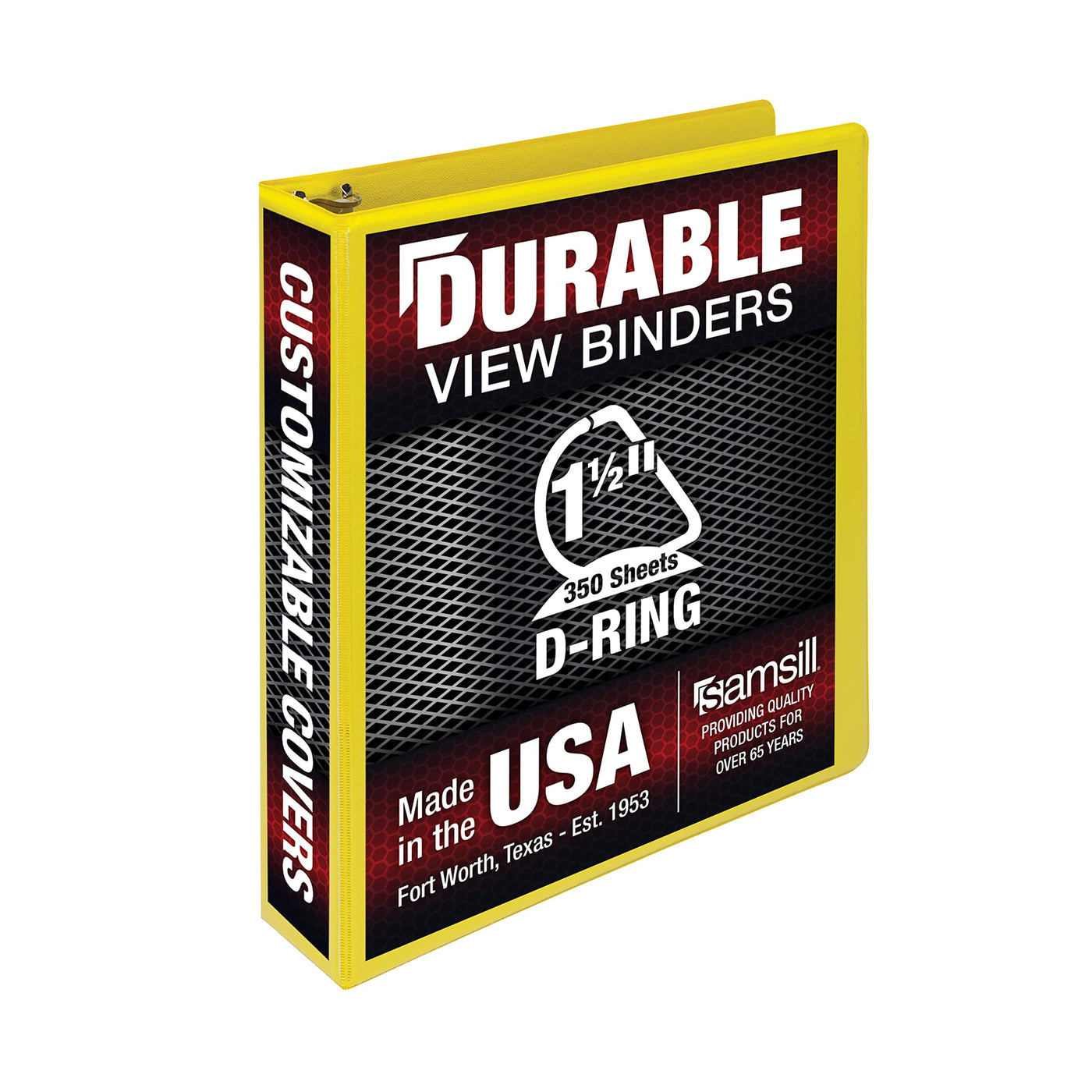 Samsill Durable 1.5 Inch Binder, Made In The Usa, D Ring Binder, Customizable Clear View Cover, Yellow, Holds 350 Pages