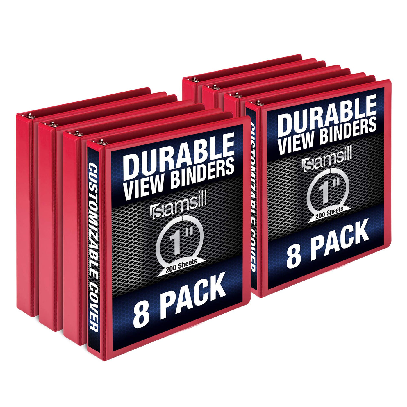 Samsill Durable 1 Inch Binder, Made In The Usa, Round Ring Customizable Clear View Binder, Red, 8 Pack (Mp88433)