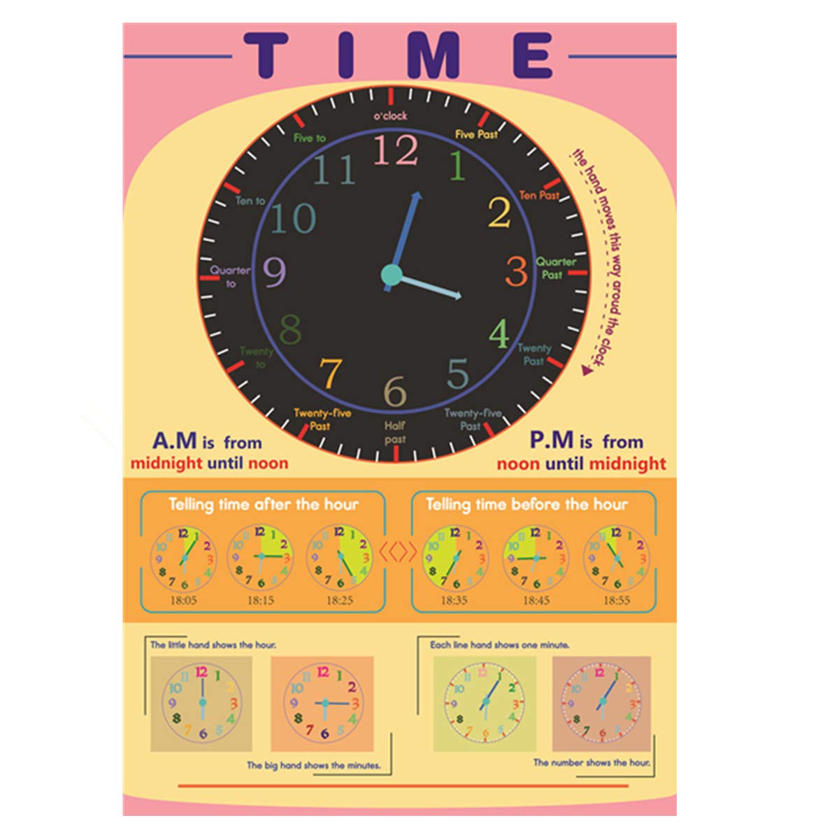 Santsun Telling Time Poster For Toddler And Kid.Great Visual Learning Clock Time Resource.Perfect Educational Tool And Classroom