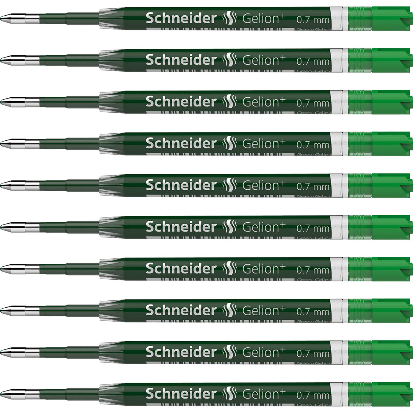 Schneider Gelion+ Gel Ink Cartridges, 0.7 Mm, Iso Format G2, Green Ink, Box Of 10 Refills (103904)