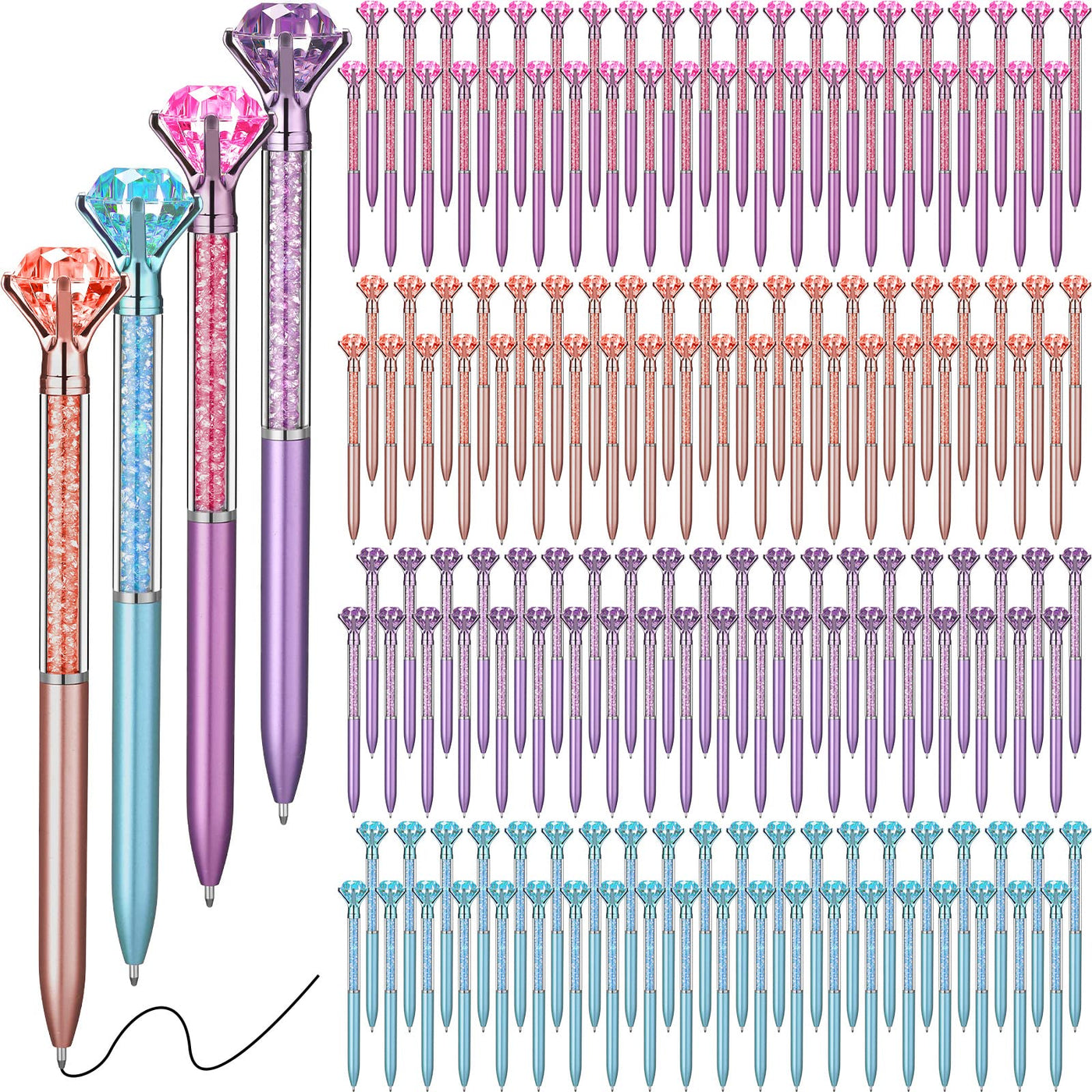 Sherr 160 Pack Big Crystal Diamond Pens Cute Ballpoint Pens Retractable Ballpoint Gem Pens Rhinestones Crystal Bling Plated 4 Co