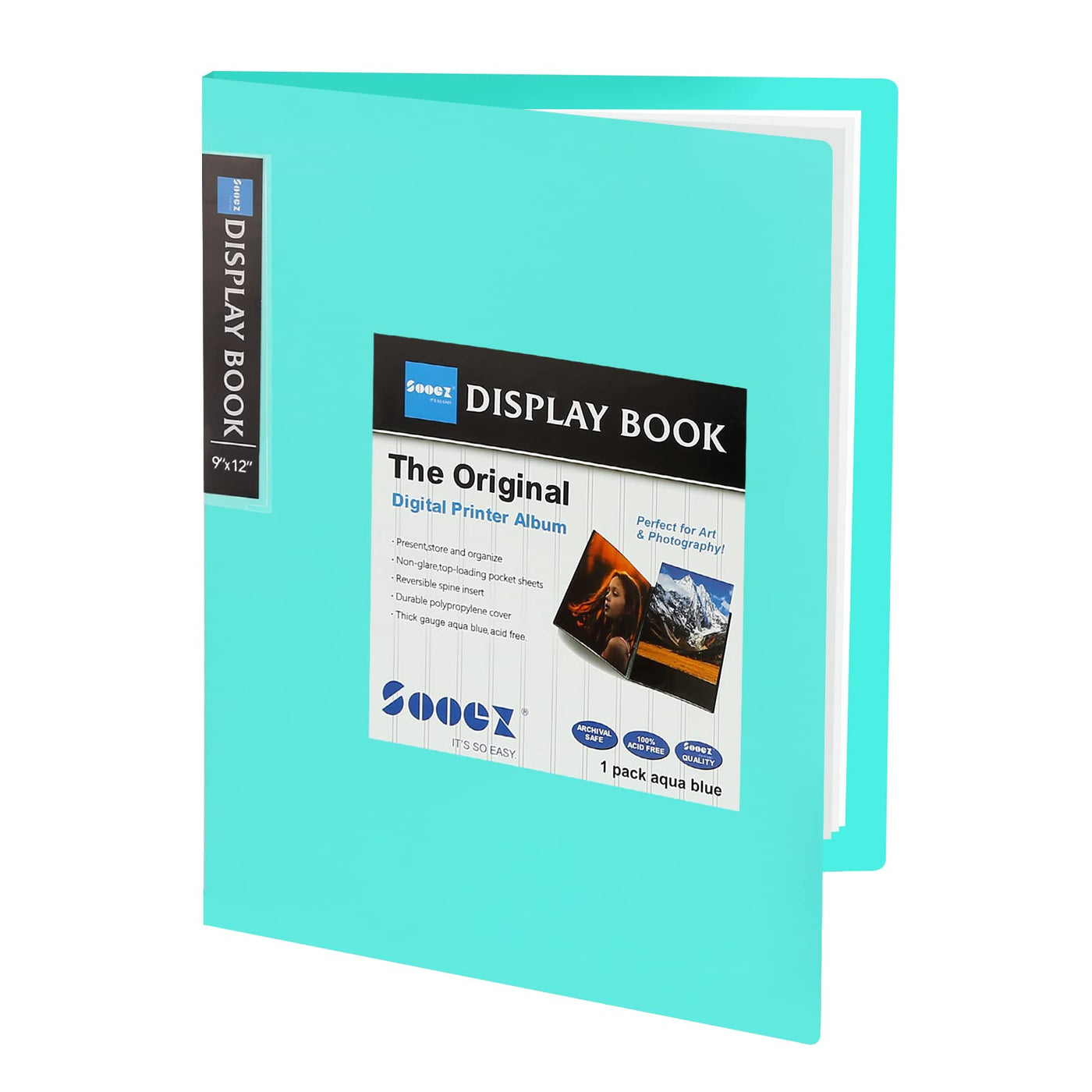 Sooez 30-Pocket Binder With Plastic Sleeves 9X12' (Aqua), Heavy Duty Art Portfolio Folder With Clear Sheet Protectors, Display