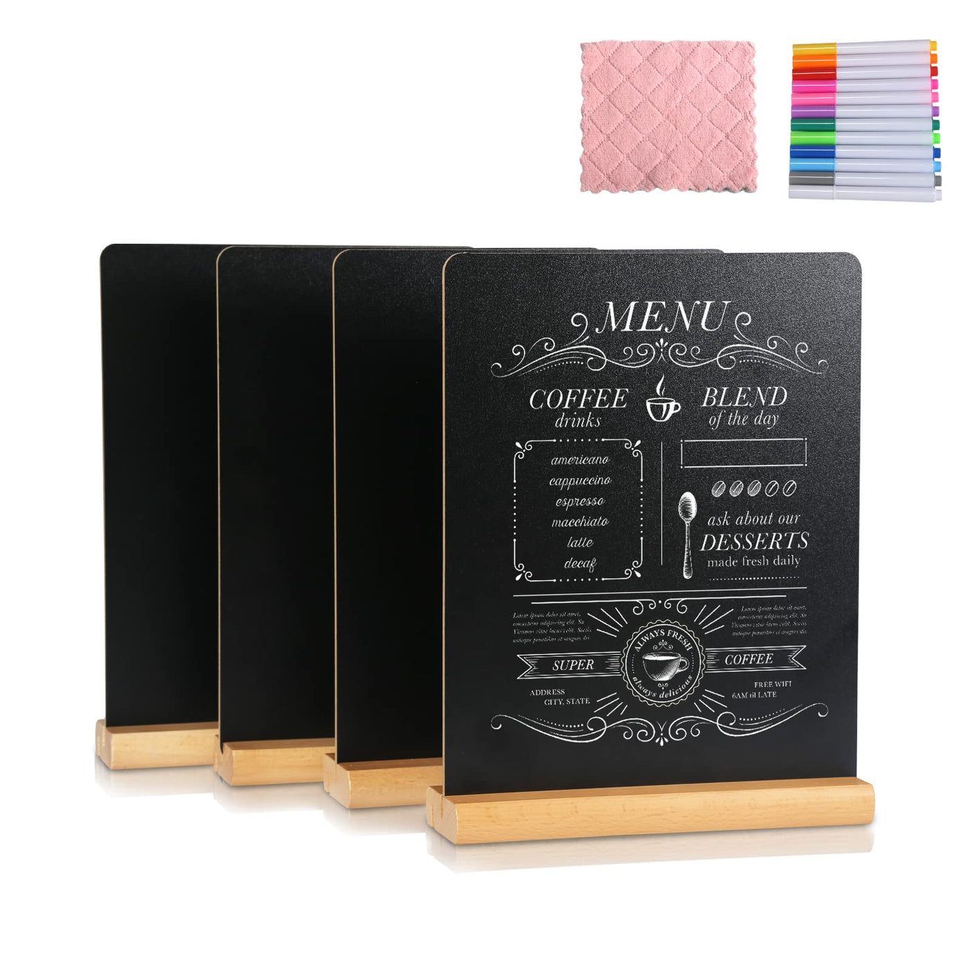 Sutine Chalkboard Signs, 4Pack 8.6 X11 Inch Tabletop Chalk Board Sign With Beech Stand, Double-Sided Small Chalkboard Sign, Mess