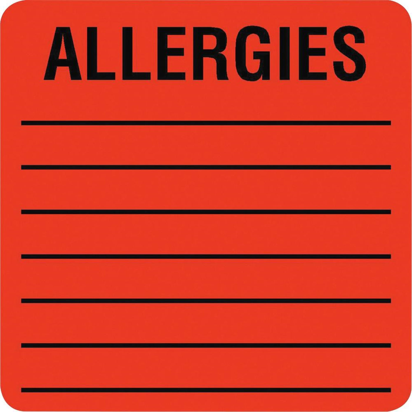 Square Medical Labels For Allergies Alert Staff Of Patient Allergies To Avoid Medication Mishaps. Fluorescent, Easy-To-Read Labels Stand Out On Patient Files And Charts And Clearly State The Word Allergies In Capital Letters. Simply Write In The Allergies On The Provided Seven Lines. Self-Adhesive Back Makes The Allergy Labels Easy To Apply.