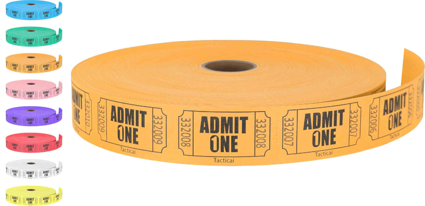 Tacticai 2000 Raffle Tickets, Admit One, Single Roll, Ticket For Events, Entry, Class Reward, Fundraiser & Prizes - Orange (1 Of