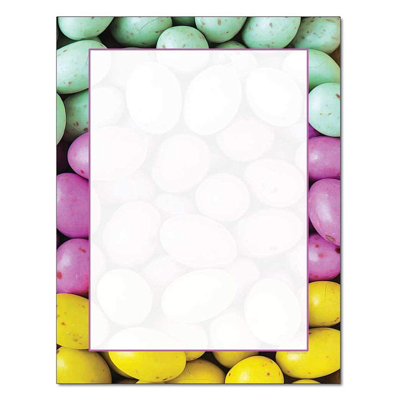 This Festive Spotted Egg Letterhead Comes In A Pack Of 25 Sheets. Each Sheet Measures 8.5' X 11'. Made Of Premium 28Lb/70T Paper. Laser And Ink Jet Compatible. The Printed Design Is On One Side Of The Paper, White On The Back.