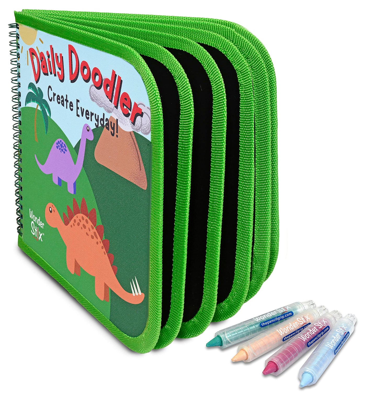 The Pencil Grip Daily Doodler Reusable Activity Book- Dino Cover, Includes 4 Wonder Stix