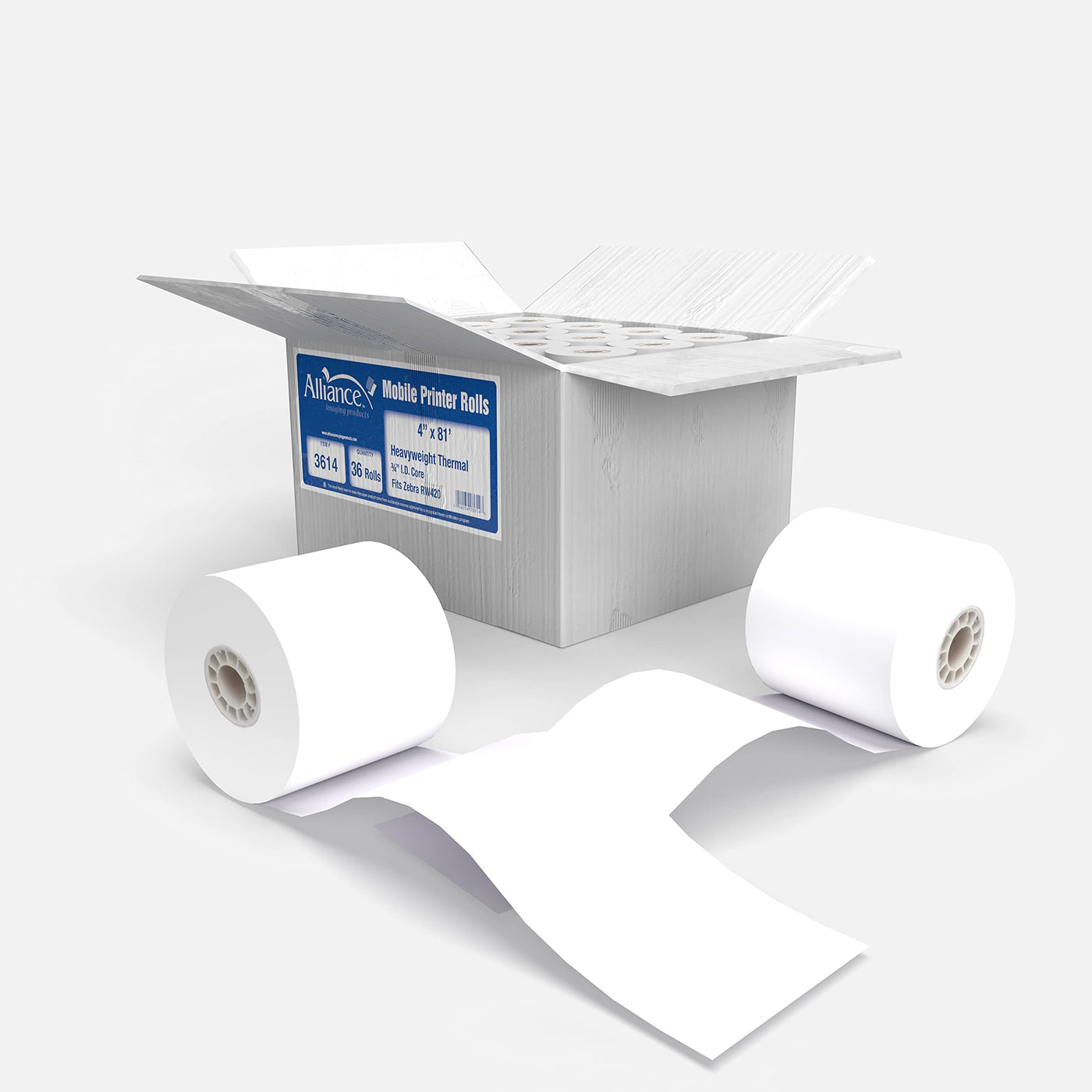 Thermal Paper Receipt Rolls, Bpa Free, Grade A, Pure 85 Bright, White Paper, Unique Thermal Coating (4' X 81' X 36 Rolls)