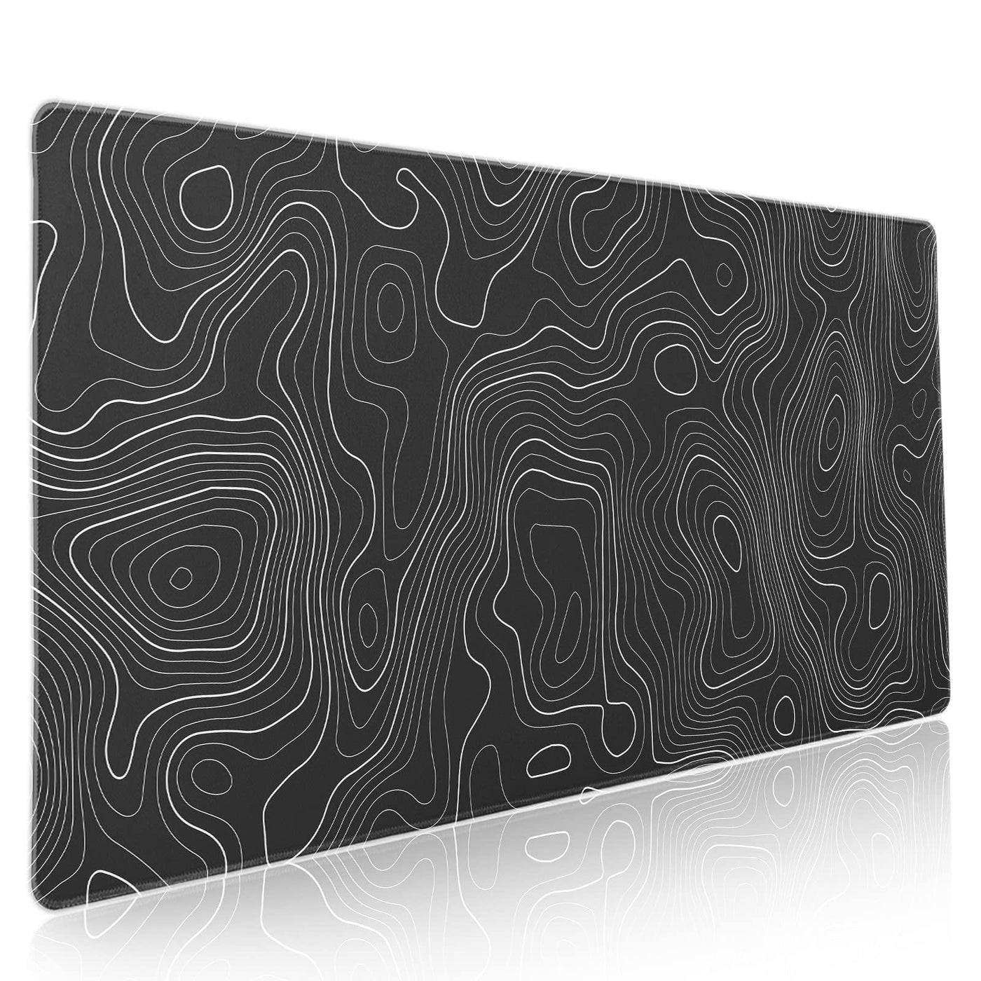 Topographic Map Large Mouse Pad Xxl Black Lines Contour Geographic Extended Large Desk Mat Big Desk Pad 90X40 Cm Non-Slip Rubber