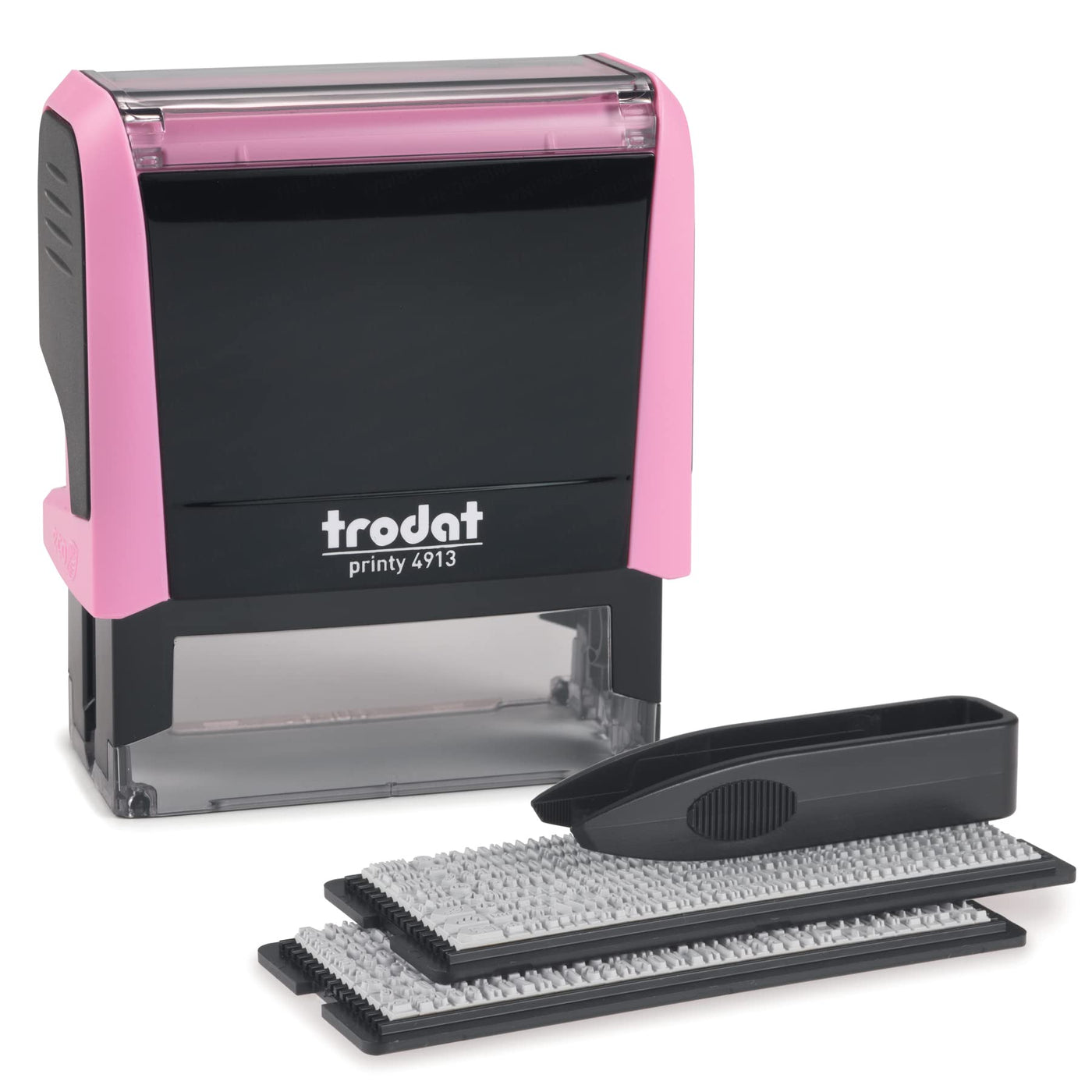 The Trodat Printy Self Inking Pastel Pink Do It Yourself (Diy) Personalized Custom Message Or Address Stamp Kit Offers Up To 5 Lines Of Customizable Text., With A Maximum Impression Size Of 7/8 X 2-3/8 Inches. This Kit Features A Tweezer And 2 Full Letter Sets With Numbers, Symbols And Icons. For Best Results, We Recommend You Use A Genuine Trodat Replacement Ink Cartridge. Features A Water Based Ink, Not Suitable For Glossy/Photo Paper.