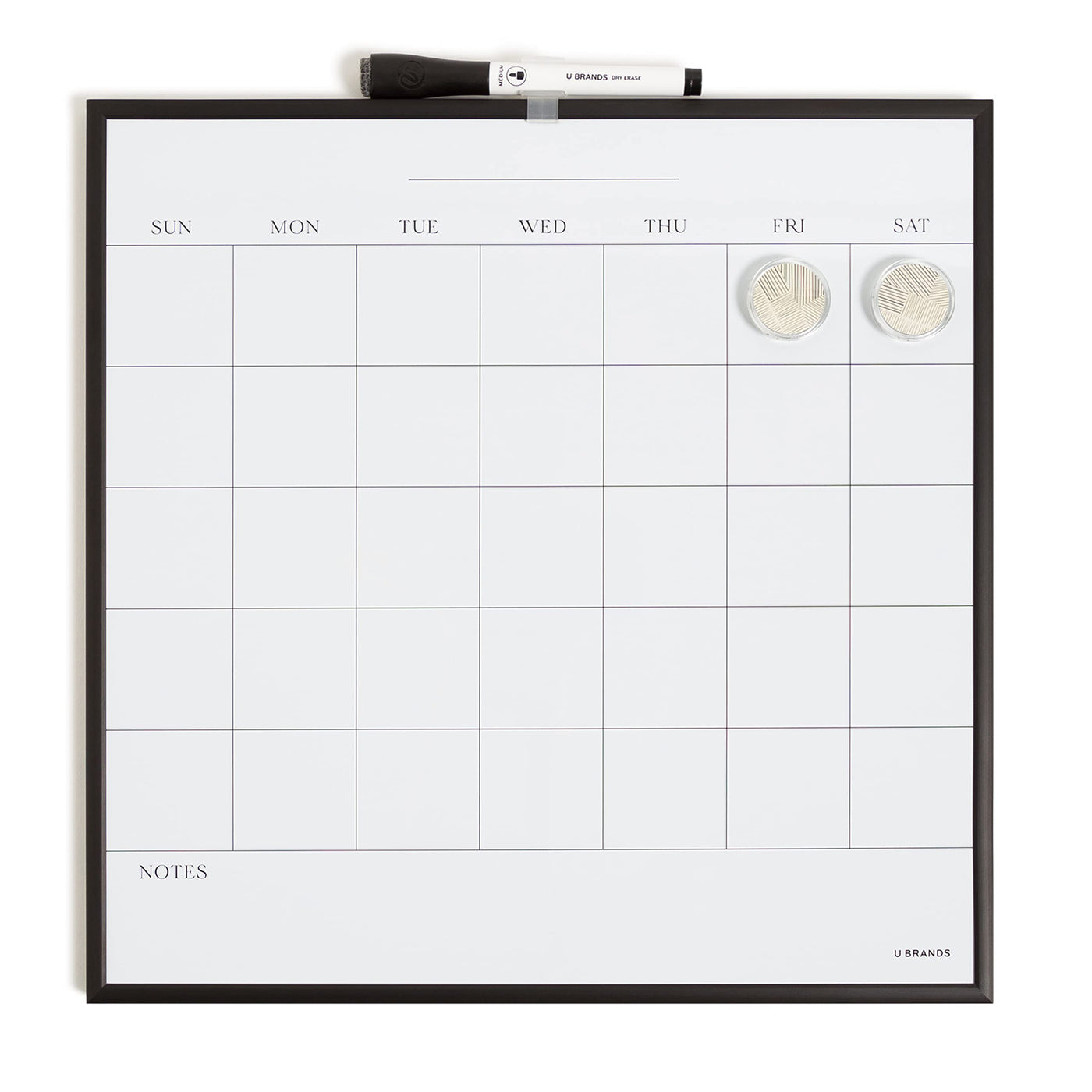 U Brands Magnetic Dry Erase Wall Calendar Board, 14'X14', Black Metal Frame, Includes Magnets And Marker