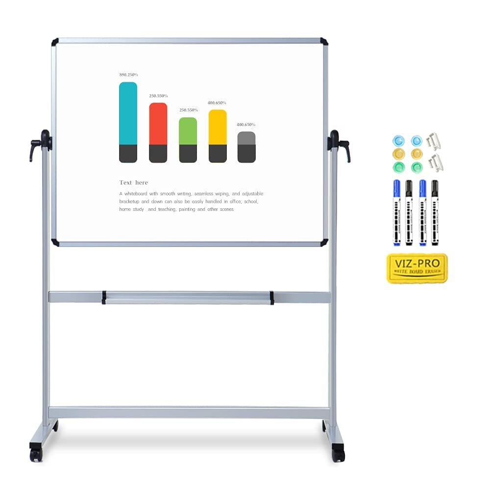 Viz-Pro Double-Sided Magnetic Mobile Whiteboard, 48 X 32 Inches, Aluminium Frame And Stand
