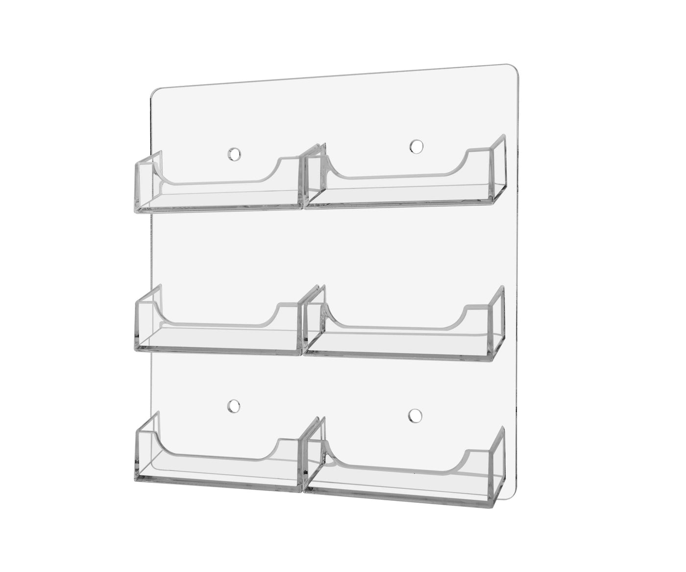 6 Pocket Business Gift Card Retail Holder Card Display Contact Wall Mount. Product Features: Holds 3.5 W X 2 H Standard Sized Business Cards, Appointment, Membership, Gift Or Rewards Cards. Pocket Dimensions: 3.5 W X 2'H X .75 D. Overall Dimensions: 8.25'W X 7.5'H X 1'D. Pocket Capacity: 50 Standard Business Cards Or 30 Gift Cards. Perfect Space Saving Multi Pocket Wall Mount Display Holder With Pre Drilled Holes And Hanging Hardware. This Six Pocket Space Saving Wall Mount Business Card Holder Provides A Sturdy Display For Business, Gift Or Appointment Cards That Complements Any Decor. These Multi Slot Card Racks Are Great Space Savers And Help You Keep Counters Free And Clear Of Clutter. Looking For A Convenient Way To Distribute Multiple Sets Of Cards In One Convenient Card Organizer Rack? Business Card Holders Make Spreading The Word On The Multiple Sets Of Cards Simple And Easy To Access And Still Appear Professional. Just One Holder To Display Multiple Sets Of Printed Material And Help Keep The Clutter To A Minimum. The Appointment Card Display Rack Has A Design That Makes It Easy For Clients And Potential Customers To Take One. Each Pocket Can Hold Up To 50 Standard Business Cards So You Will Not Have To Fill Them That Often. This Gift Card Showcase Display Is Made With Acrylic Plastic Material And Made Right Here In The Usa. The Wall Card Rack Provides Long-Term Durability In Addition To Keeping Your 3.5 Inch By 2 Inch Printed Material Neatly In The Holder, And Can Be Easily Placed On Any Wall By Exits Or Entrances. We Have Designed These To Display Several Sets Of Business Cards And Can Be Conveniently Placed On Walls Or Anywhere You Want To Leave Your Calling Cards For The Taking. These Card Holders Come Pre-Drilled For Easy Hanging And Includes Hardware. All Sizes Are Approximate.