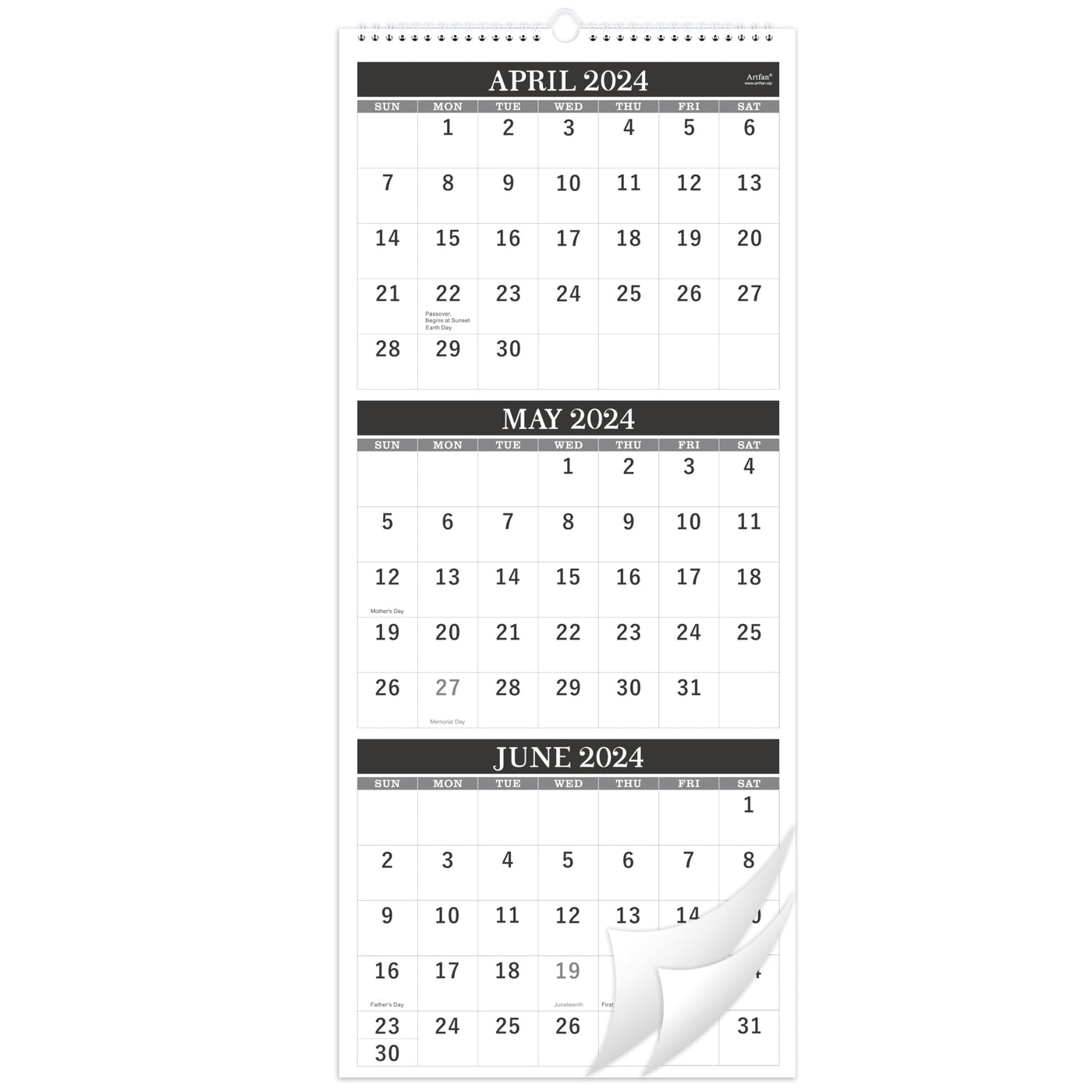 Wall Calendar 2024-2025 - April 2024 - July 2025, 3 Month Calendar Vertical Display, 11' X 26', Large Monthly Calendar, Lay- Flat - Classic Black