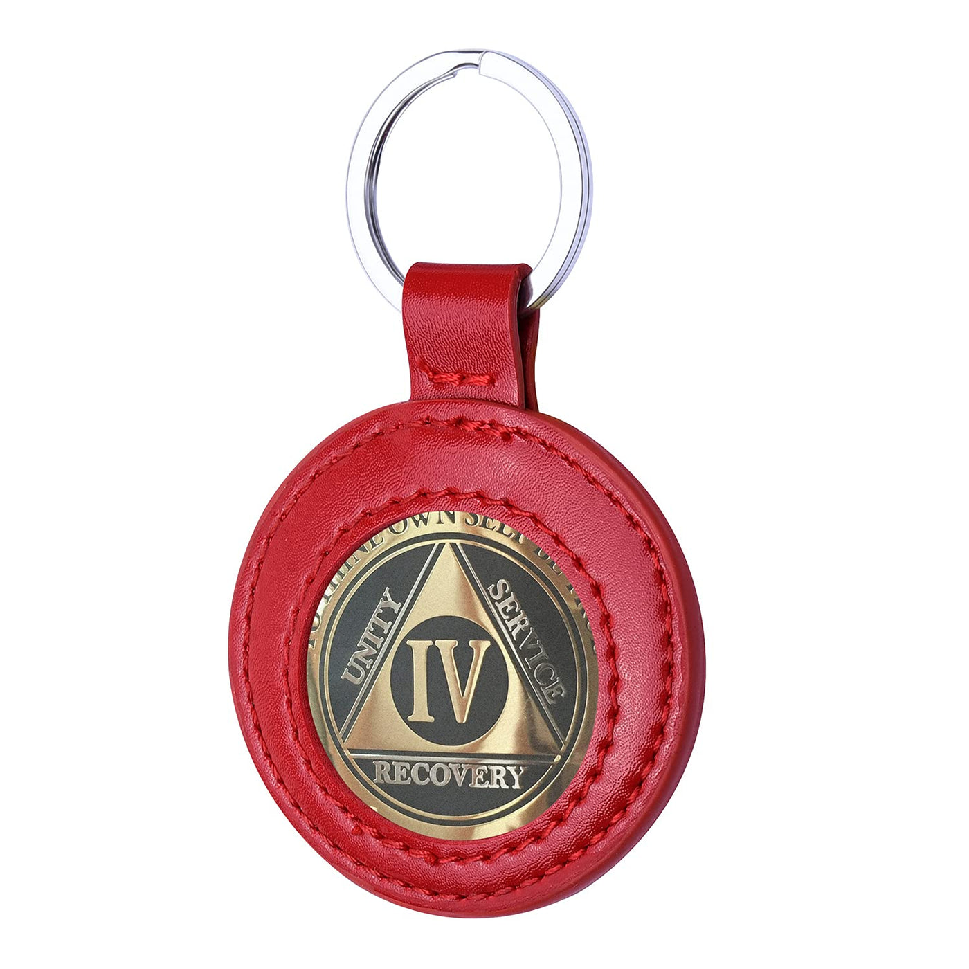 Wisdompro Pu Leather Coin Holder Keychain For Aa Medallion, Standard Challenge Coin, Recovery Chip - Red