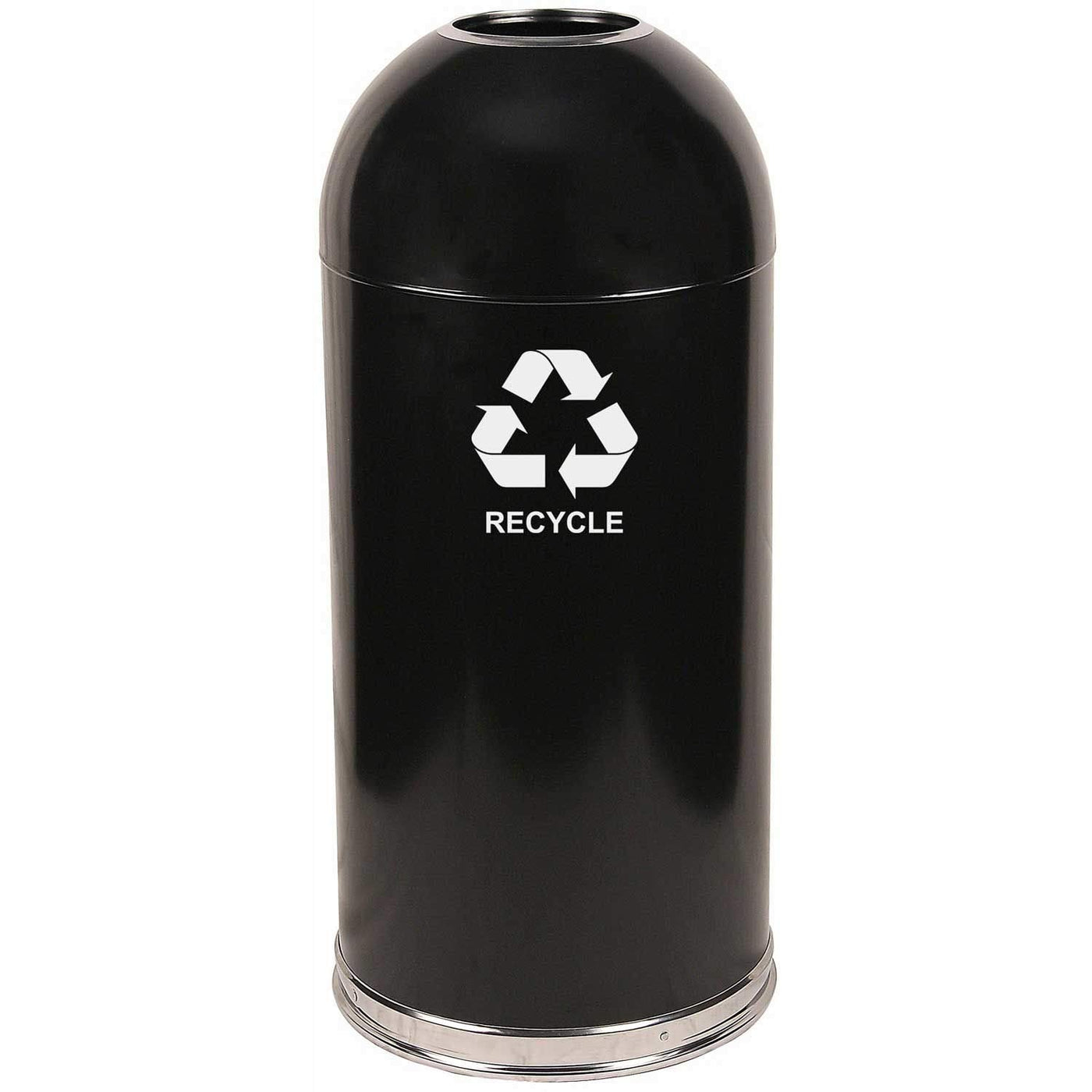 Standard Open Dome Top Recycling Receptacle With Galvanized Liner. A Classic Recycling Receptacle Fit For Any Environment. Features A Strong Steel Shell. Polished Metal Trim On Top Opening And Base. Rolled-Under Stainless Steel Bottom Offers Floor Protection. Open-Top Receptacle Offers Touchless, Sanitary Waste Disposal. Ada And Osha Compliant. Recycle Decal Included. For Indoor Use. Black Color. Measures 15' Diameter By 35' Height.