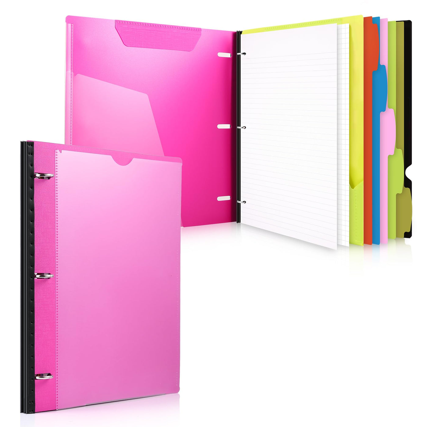 Wot I All-In-One Telescoping Binder Notebook, Refillable 3 Ring Binder With Customized Front Cover+Catalog Back Pocket+5 Subject Dividers+Movable Pocket Folder+60 Sheet Notepaper, Pink