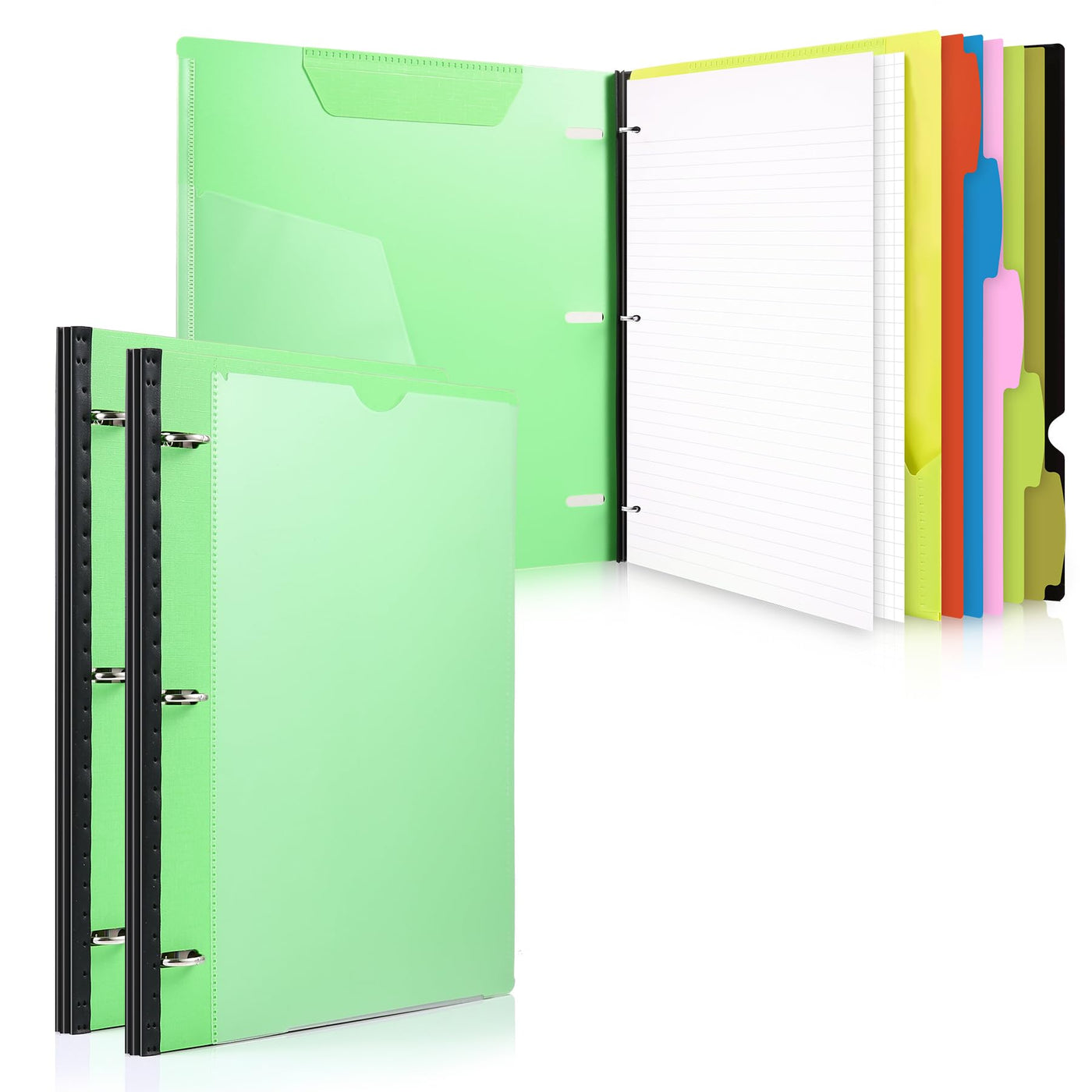 Wot I 2-Pack Telescoping 3 Ring Binder Notebooks - Customizable Cover, 5 Dividers & Pocket Folder In One Slim Organizer (60 Sheets Included),