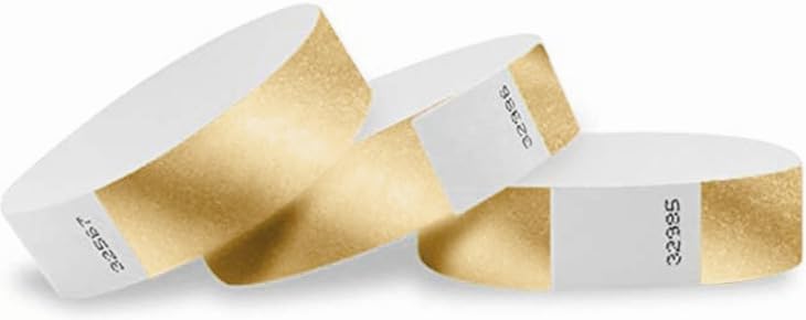 Wristco Metallic Gold Tyvek Wristbands For Events - 1,000 Count - Comfortable Tear Resistant Paper Bracelets Id Wrist Bands For