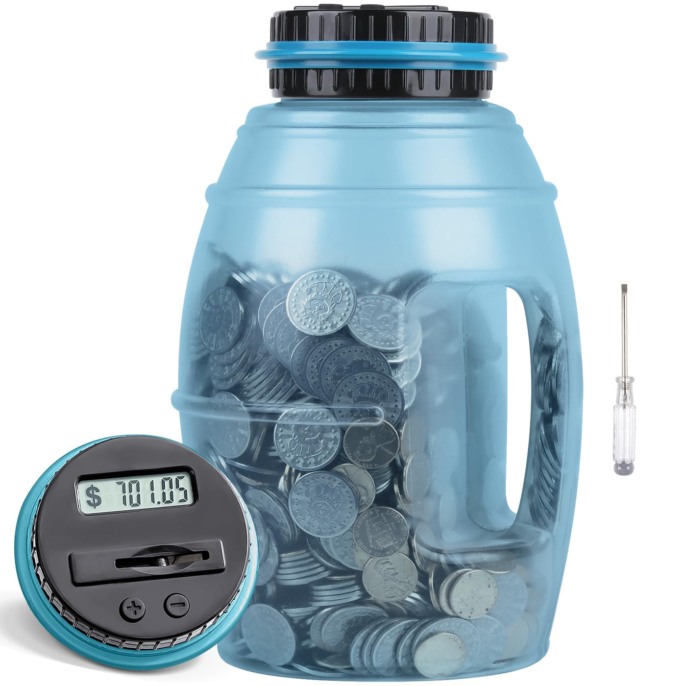 X-Large Piggy Bank For Adults, Vcertcpl Digital Coin Counting Bank With Lcd Counter, 2.8L Capacity Coin Bank Money Jar For Adults, Designed For All Us Coins (Blue2, X-Large)