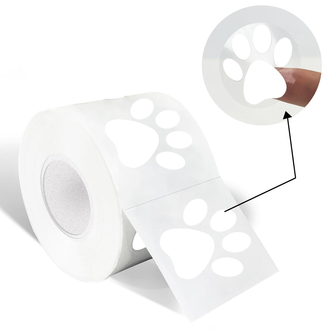 Yeachlaing 1.5 ' Clear Round Bear Paw Print Stickers - Dog Puppy Stickers With Perforation Line (500 Pcs, White)