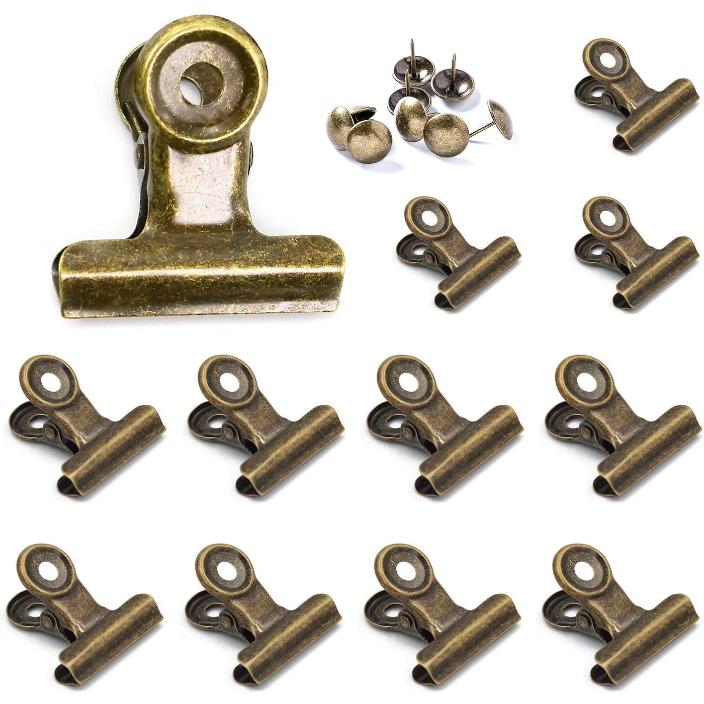 Yuchiya 12 Pack Metal Clips With 12 Push-Pins For Corkboard,Bulldog Clips For Hanging Pictures,Small Hinge Clips For Crafts,Mini