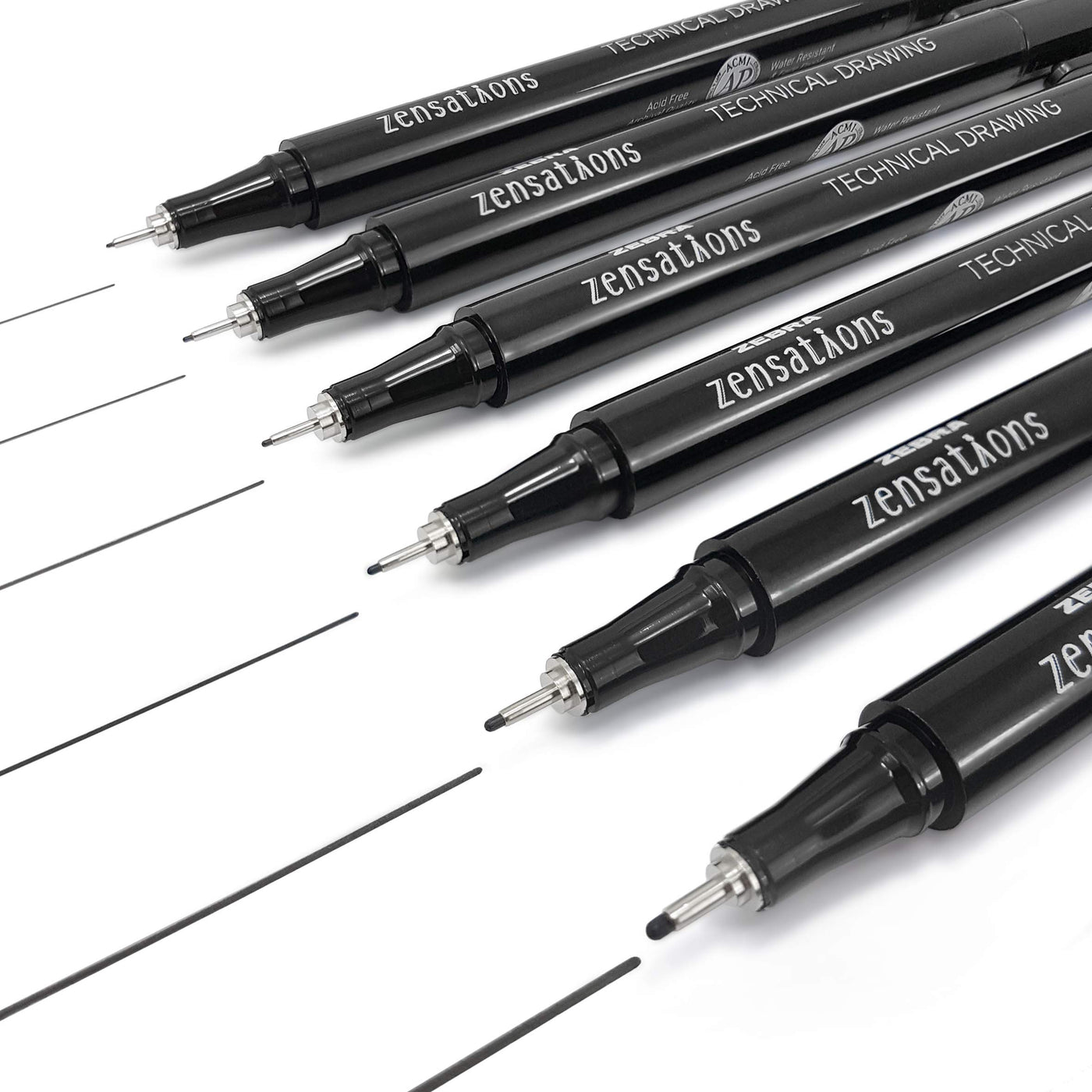 Zebra Zensations Technical Drawing Fineliner Pens - Full Set Of 6 Grades - Black Ink