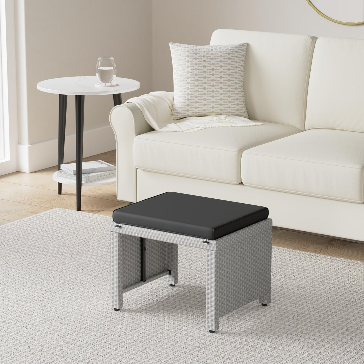 Best Choice Products Set Of 2 Wicker Ottomans, Multipurpose Outdoor Furniture For Patio, Backyard, Additional Seating, Footrest, Side Table W/Removable Cushions, Steel Frame - Gray/Black