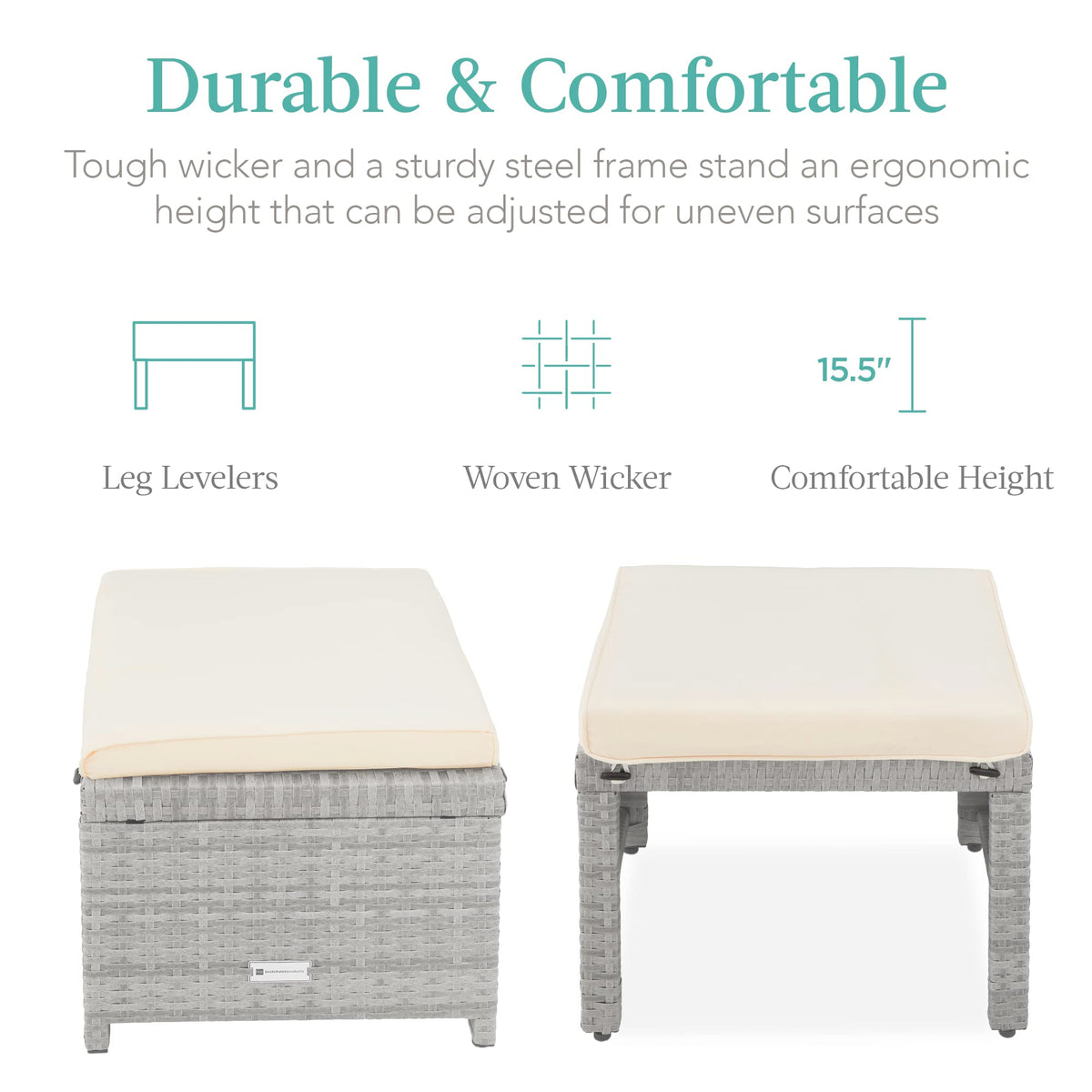 Best Choice Products Set Of 2 Wicker Ottomans, Multipurpose Outdoor Furniture For Patio, Backyard, Additional Seating, Footrest, Side Table W/Removable Cushions, Steel Frame - Gray/Cream