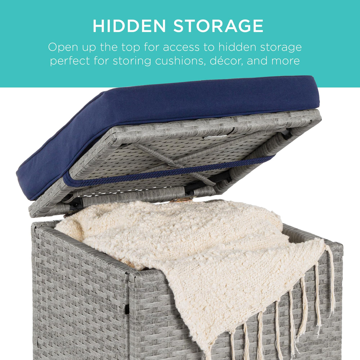 Best Choice Products Set Of 2 Wicker Ottomans, Multipurpose Outdoor Furniture For Patio, Backyard, Additional Seating, Footrest, Side Table W/Storage, Removable Cushions - Gray/Navy