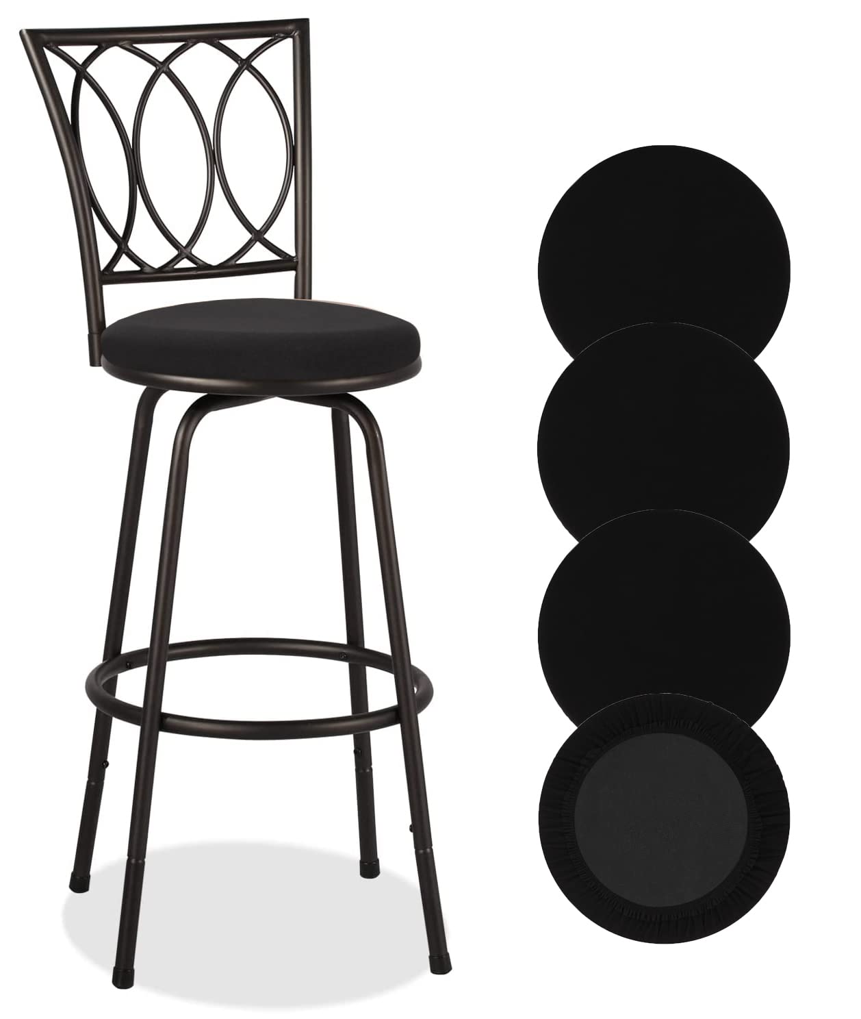 Deisy Dee 4Pcs Round Bar Stool Seat Covers Stretch Round Chair Covers For 13-16 Inch Stool Chair (Black)