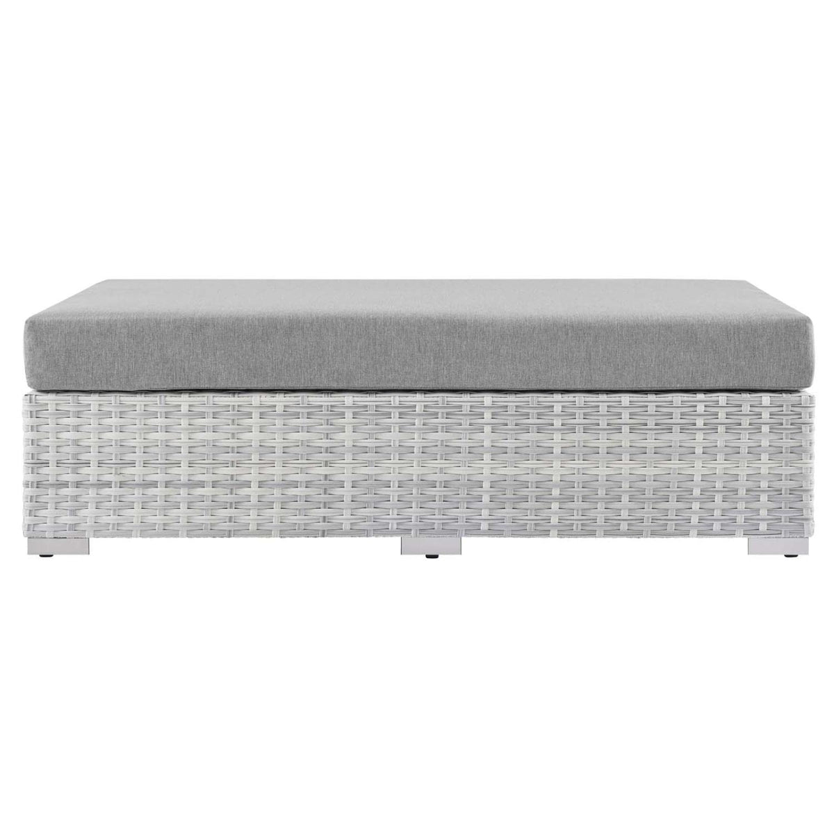 Gather stages of sensitivity with the Convene Outdoor Sectional series. Made with a synthetic rattan weave and a powder-coated aluminum frame, Convene is a versatile rectangular patio ottoman from an outdoor collection that shifts and combines according to the spontaneous needs of the moment. Outfitted with all-weather fabric cushions, the Convene Outdoor Rectangular Ottoman leaves a positive impression on friends and family while enhancing your patio, backyard, or poolside retreat with palpable distinction. Set Includes: One - Convene Rectangular Ottoman Product Dimensions: Overall Product Dimensions: 29"L x 56.5"W x 12"H