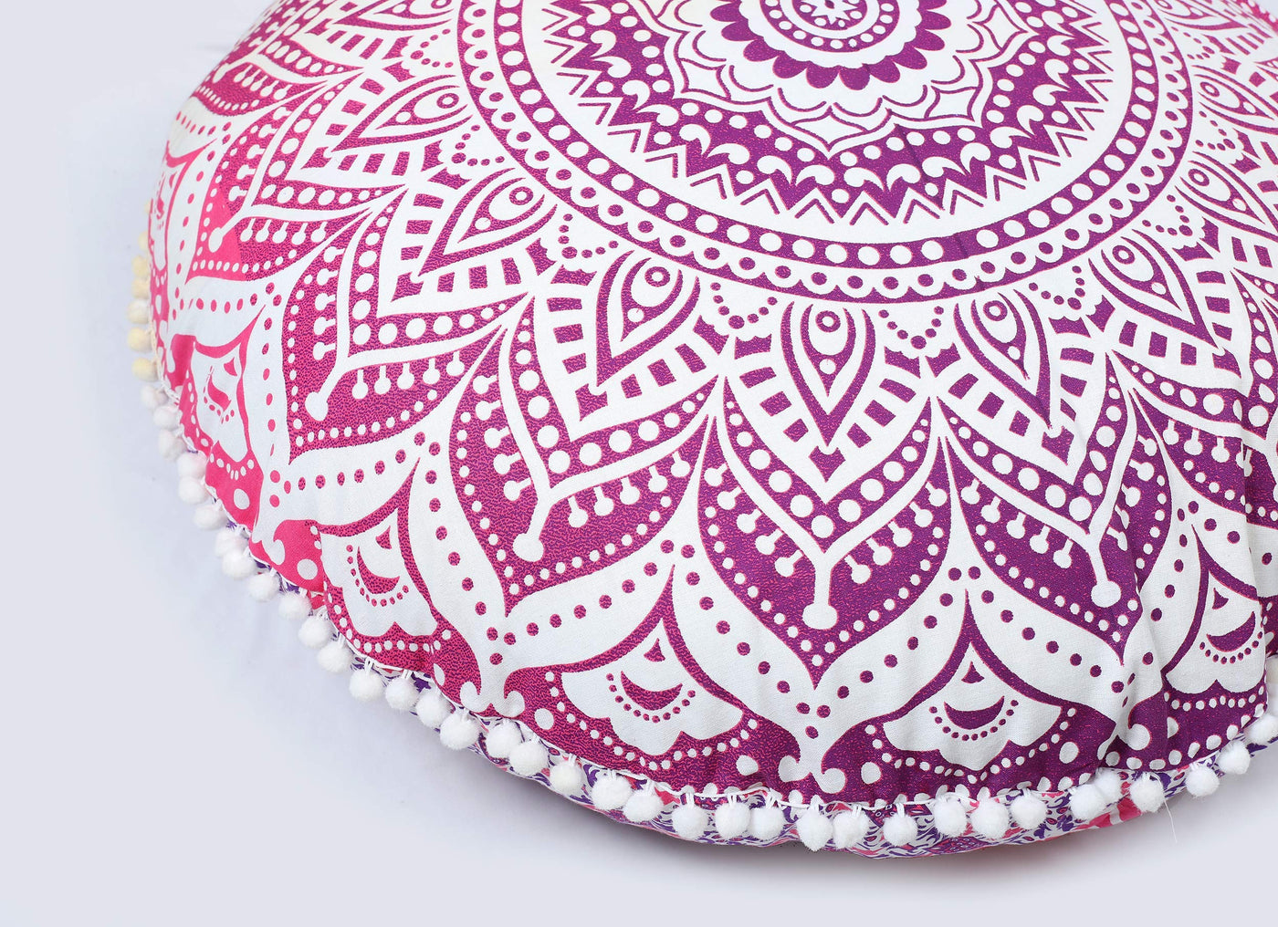 Popular Handicrafts Floor Pillow Cushion Cover - Hippie Mandala Large Round Ombre Pouf Sham - Meditation Seating Ottoman Bohemia