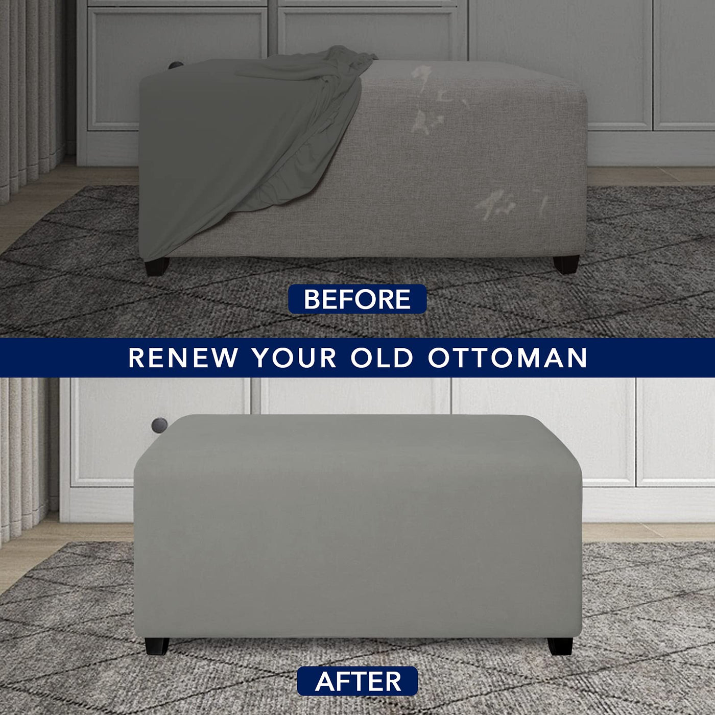 Purefit Super Stretch Soft Form Fit Ottoman Cover Rectangle - Ottoman Slipcovers For Foot Stool & Folding Storage Furniture For Living Room With Nonslip Elastic Bottom (Small, Light Gray)