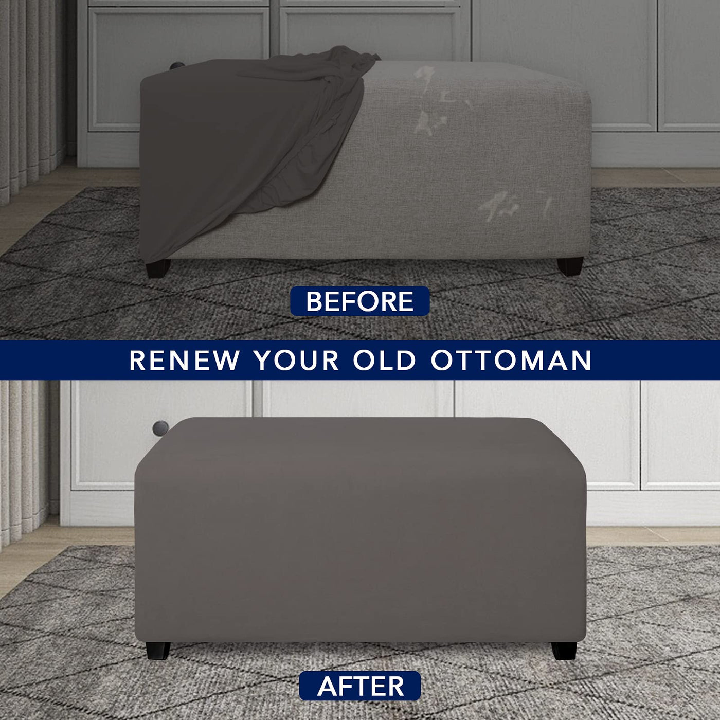 ? PureFit’s form fit ottoman slipcovers are available without separate cushion covers for a seamless, custom look that will last for years.