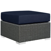 Enhance your patio with the innovative Sojourn Outdoor Patio Furniture collection. The Sojourn Outdoor Patio Ottoman provides a sturdy and versatile seating option that can be easily rearranged to suit your needs. With top-of-the-line Sunbrella fabric cushions, synthetic rattan weave, UV protection, and a powder-coated aluminum frame, this outdoor wicker ottoman is perfect for enjoying your time outdoors. This particular piece is part of the Outdoor Patio Ottoman set, which includes one Sojourn Ottoman.