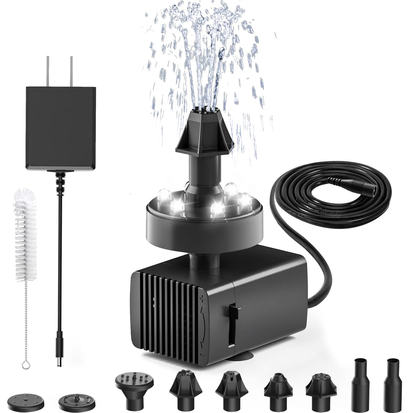 24-Hours Working Bird Bath Fountains Plug In, Jutai Adjustable Dc 12V Water Fountain Pump With Led Light For Birdbath, Garden, S