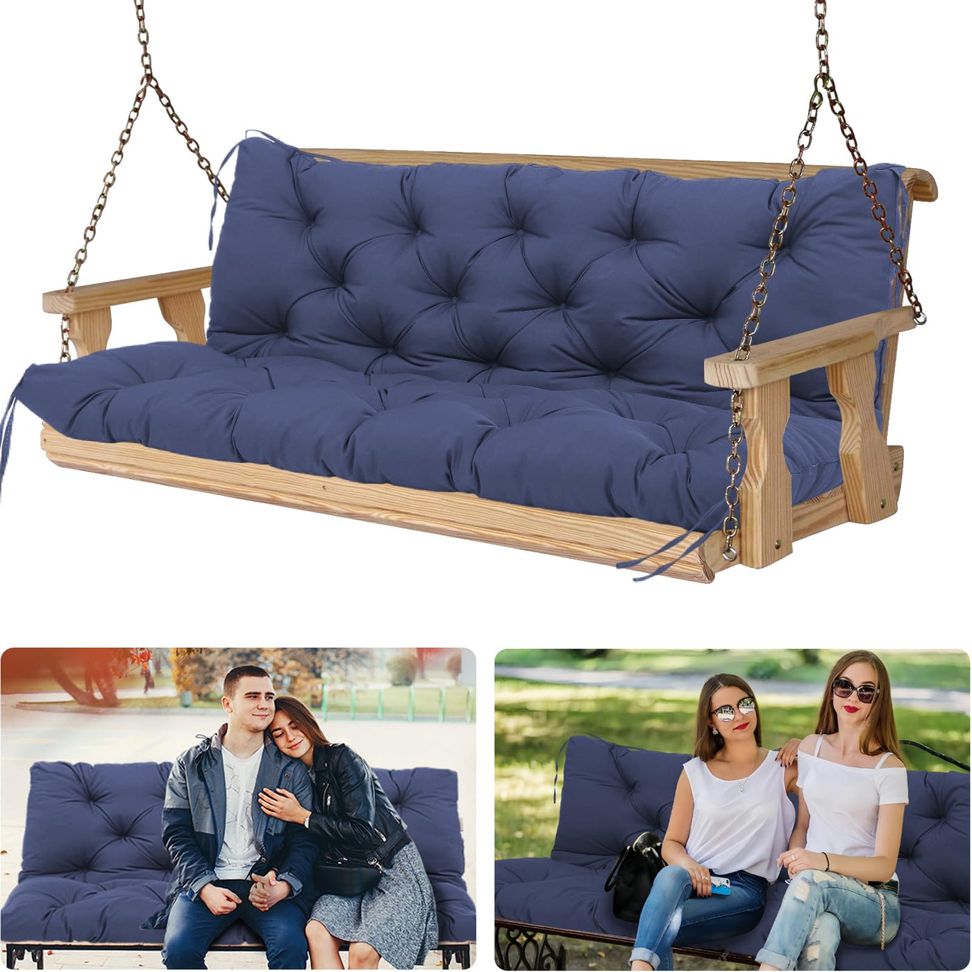 Specification:?Product Name: Swing Cushions 3 Seater Replacement, 2-3 Seater Porch Swing Cushions Outdoor 60Inch X 40, Waterproof Swing Replacement Cushions For Outdoor Patio Porch Garden Backyard Bench Cushions?Cover: Waterproof Polyester?Filling: Highly Elastic Pearl Cotton?Size: Porch Swing Cushions Outdoor 60 Inch X 40 Inch?Thickness: 5 Inches Of Thickened?3 Person Swing Cushion Replacement Comes With 8 Tiesfeature:? Swing Replacement Cushion Made With Highly Elastic Pp Cotton Filling And Premium Waterproof Fabric, 3 Seat Outdoor Swing Cushions With Excellent Elasticity Supporting And Long-Lasting Recovery Ability, Patio Swing Cushions Replacement 3 Seater Durable Enough To Withstand Outdoor Elements. Replacement Cushions For 3 Person Swing Attached Backrest Ensures Proper Support And Enhances The Overall Seating Experience, Swing Replacement Cushion The Perfect Addition To Any Patio Swing, Garden, Porch, Balcony, Backyard, Terrace Furniture.? Porch Swing Cushion Replacement Comes With Ties On Each Corner To Secure The Swing Cushion For Outdoor Patio Swing To Your Swing Or Bench Preventing Porch Swing Replacement Cushion From Sliding Or Being Blown Away By The Wind.? The Outdoor Waterproof Swing Cushion Is Designed For Easy Maintenance And Replacement Cushions For Swing Waterproof Can Be Wiped Clean With A Damp Cloth, Making It Ideal For Outdoor Use.Package Includes: 1 X Outdoor Swing Cushions With Backrest (Excluding Chairs)Notes:&Nbsp;Due To Manual Measurement, Please Allow Patio Swing Cushion 1-2Cm Measurement Deviation.