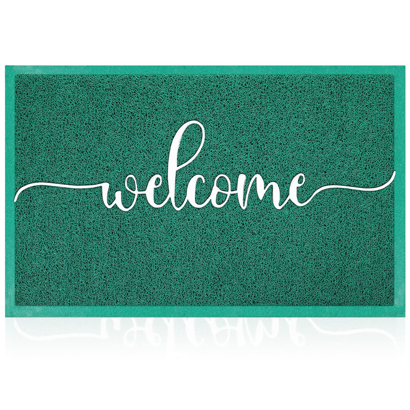 Aazzkang Green Door Mat Outdoor Welcome Mat With Non Slip Rubber Backing Quickly Absorb Mud Easy To Clean Entry Doormat For Indo