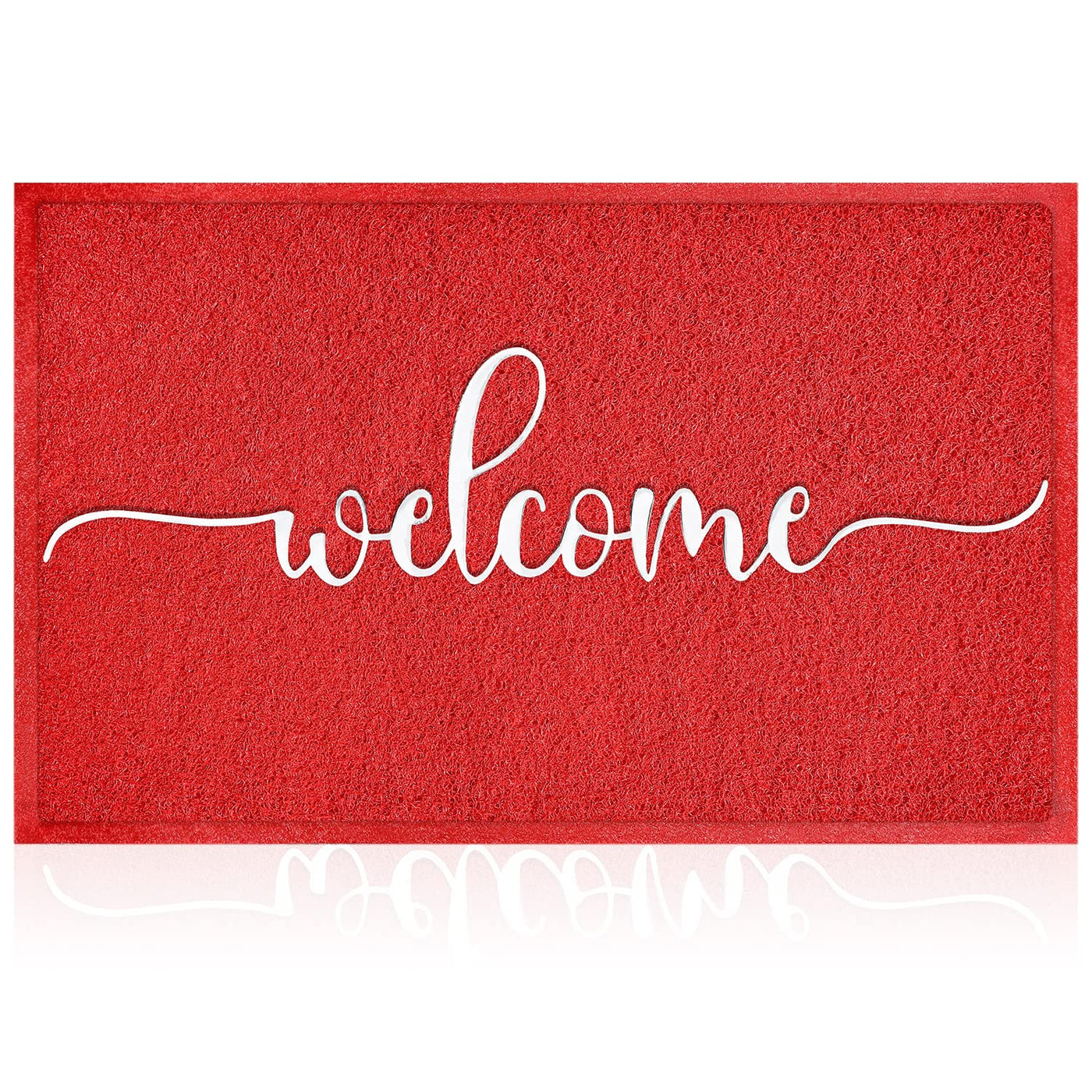 Aazzkang Red Door Mat With Non Slip Rubber Backing Outside Inside Welcome Mats For Front Door Quickly Trap Dirt Easy To Clean En