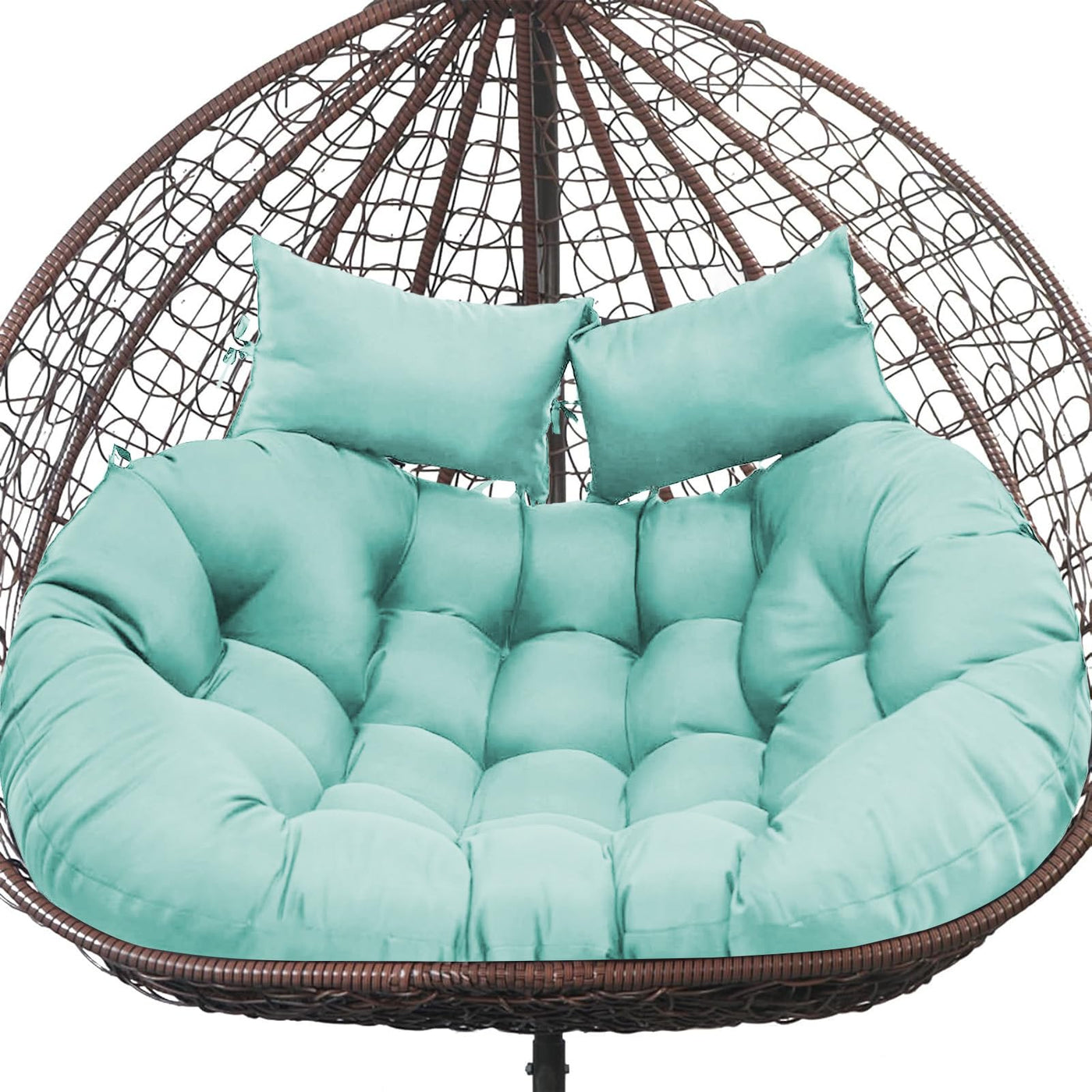 Waterproof Double Swing Chair Cushion:The Outdoor Double Egg Chair Cushion Is Made Of High-Density Polyester Material, Waterproof, Sunproof, Wear-Resistant And Durable. The Swing Egg Chair Cushion Can Be Cleaned Directly With A Damp Cloth. You Can Put It On The Egg Chair In The Garden Or Patio. No Need To Worry About Exposure To The Sun. It Is Durable. Double Egg Chair Swing Cushion:The Size Of The Double Egg Chair Cushion Is 140Cmx90Cm/55X35In. When You Are Alone, You Can Fully Immerse Yourself In It. You Can Also Enjoy The Time Of Double Hanging Egg Chair Cushions With Your Children Or Loved Ones. Very Suitable For Your Leisure Time. Note:The Egg Chair Cushion May Flatten And Shrink When Opened, Please Let It Dry In The Sun For A Week And Pat It A Few Times To Fluff It Up. Alternatively, Drying It In The Dryer Will Give You Better Results. 10-15 Minutes In The Dryer Will Quickly Bring It Back To Its Chunky Appearance. Thickened Swing Egg Chair Cushion: The Double Hanging Egg Chair Cushion Is Filled With Pp 15D Cotton, Which Has Good Elasticity. The Extra Thick Cushion Gives You A Feeling Of No Rocking Chair Or Rattan Chair Structure, Effectively Preventing Hip Inversion And Having Good Rebound Effect, Which Can Better Reduce Hip Pressure, Relax Hip Joints, And Make You Feel Softer And More Comfortable. Easy To Installation: This Egg Chair Cushion Replacement Has The Belt And Can Easy To Installtion In The Egg Chair, And Also Very Convenient To Wash.